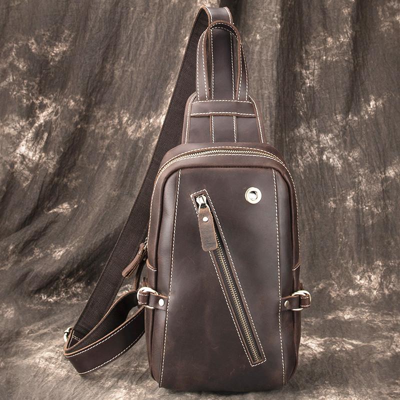 Best LEATHER MENS Sling Bags Sling Pack Vintage One Shoulder Backpack Chest Bag For Men