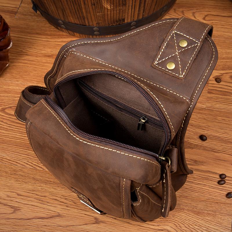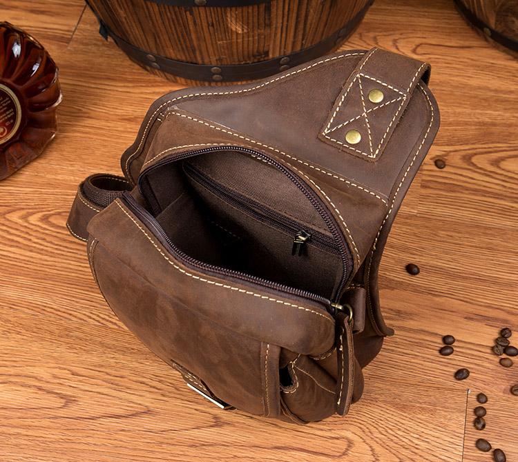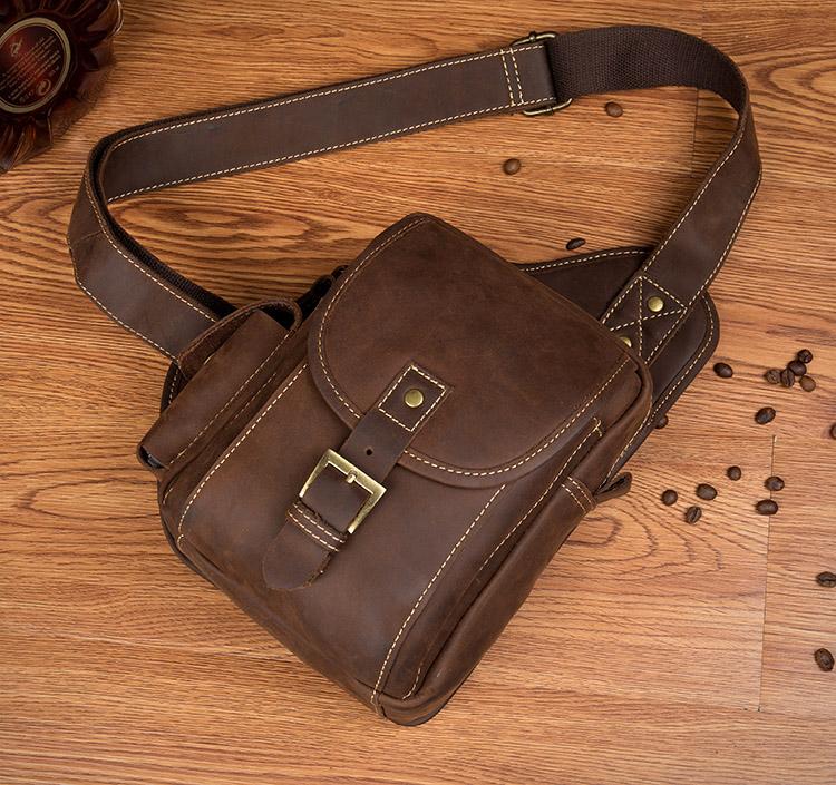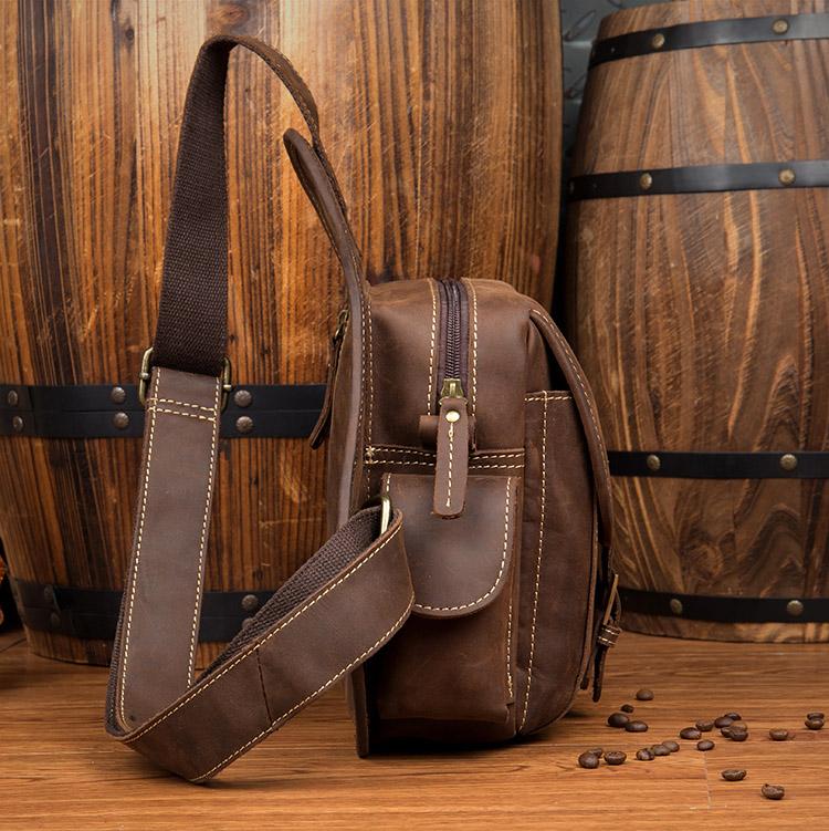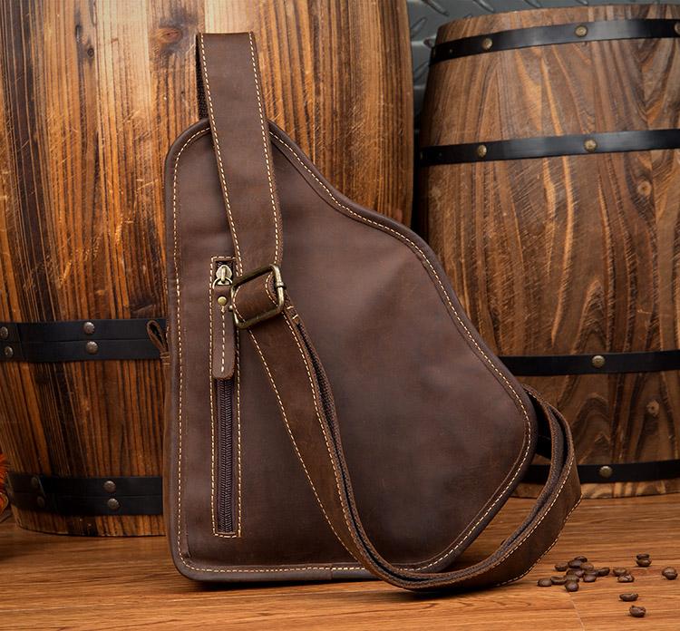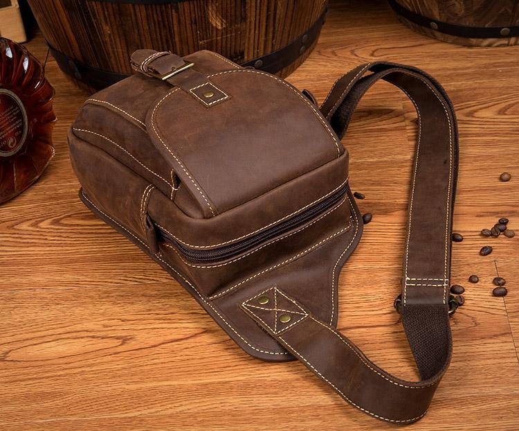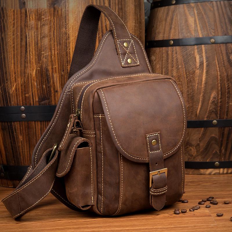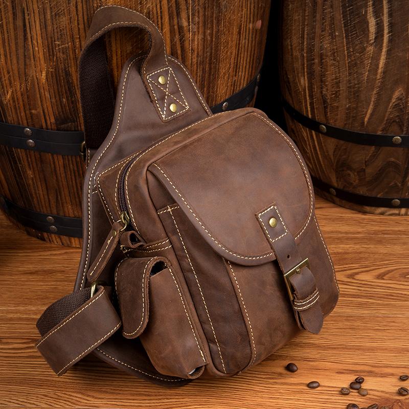 Style: Brown Casual Leather Mens 8 inches Sling Bags Chest Bag One Shoulder Backpack for Men