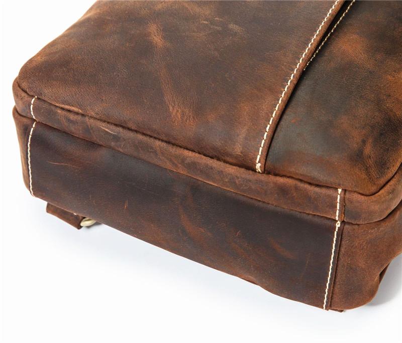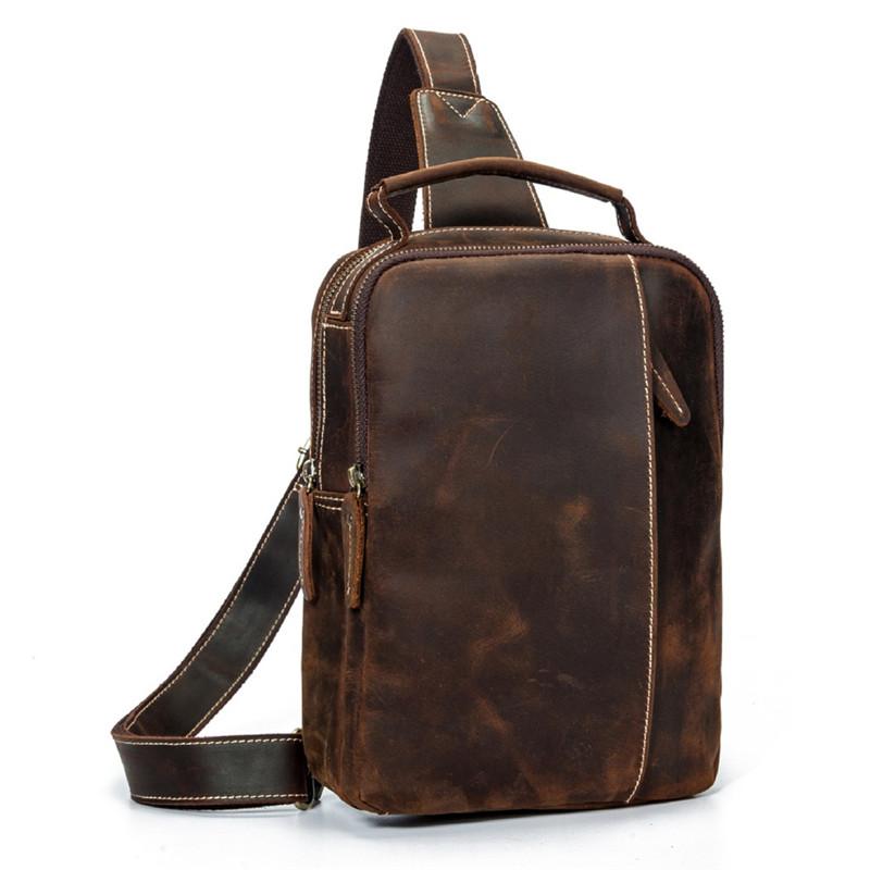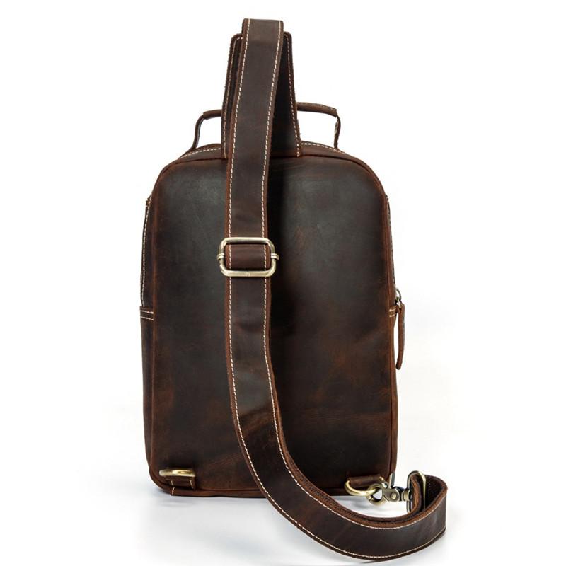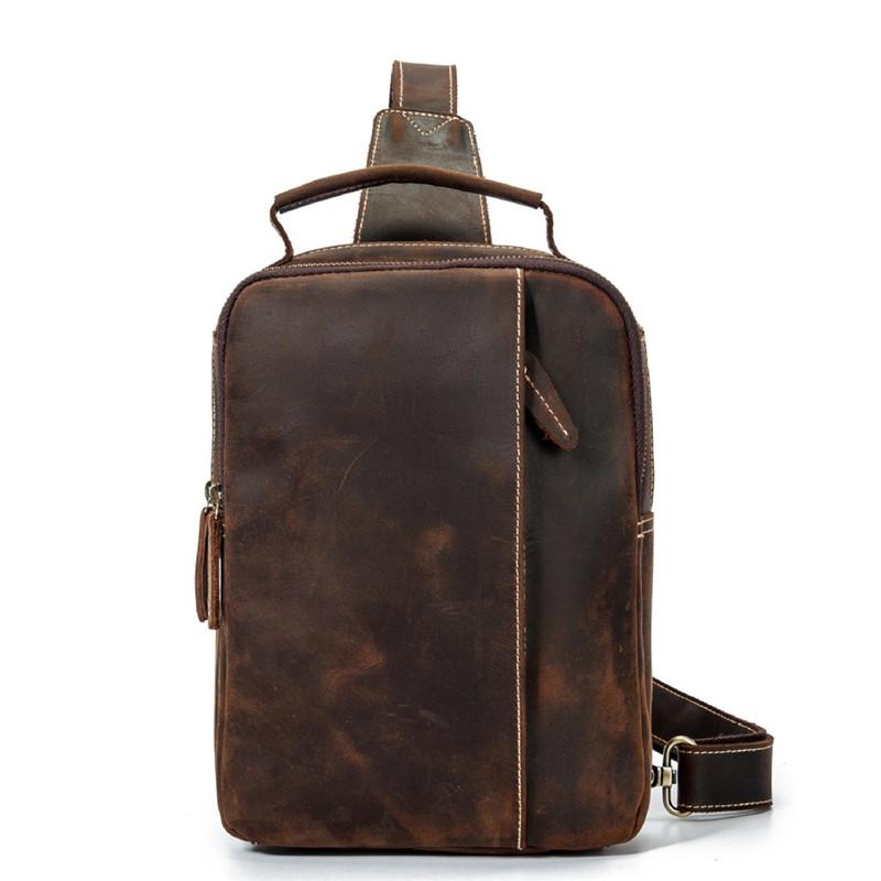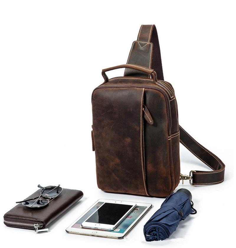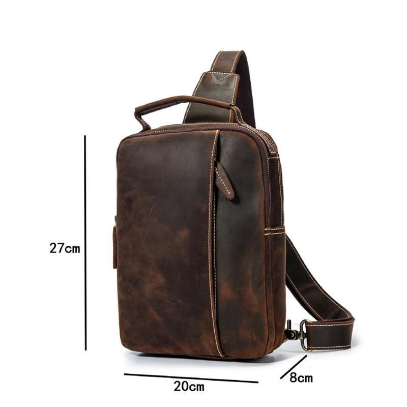 Style: Brown Cool Distressed LEATHER MENS 8 inches Sling Bag One Shoulder Backpack Dark Brown Chest Bag For Men
