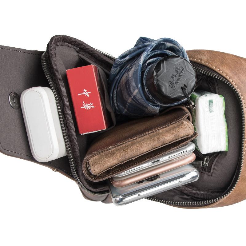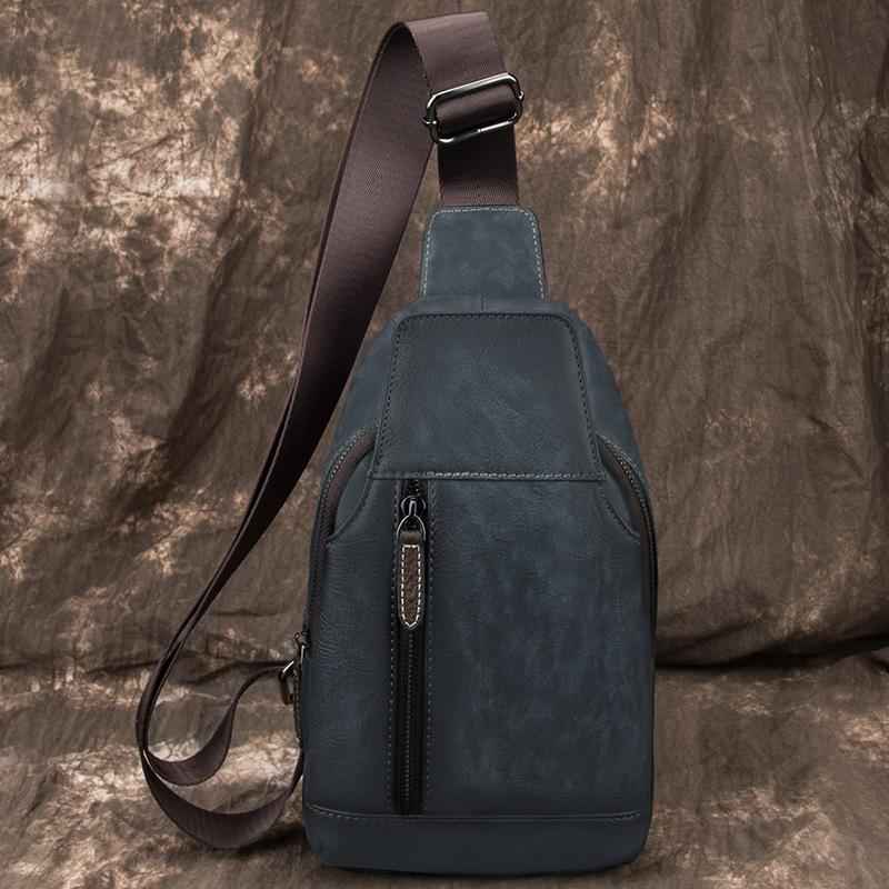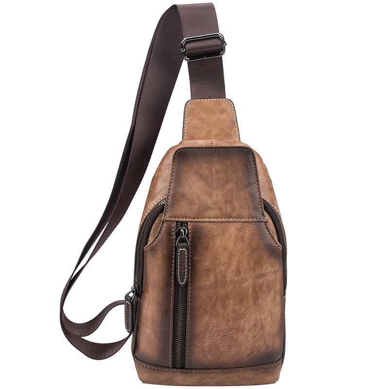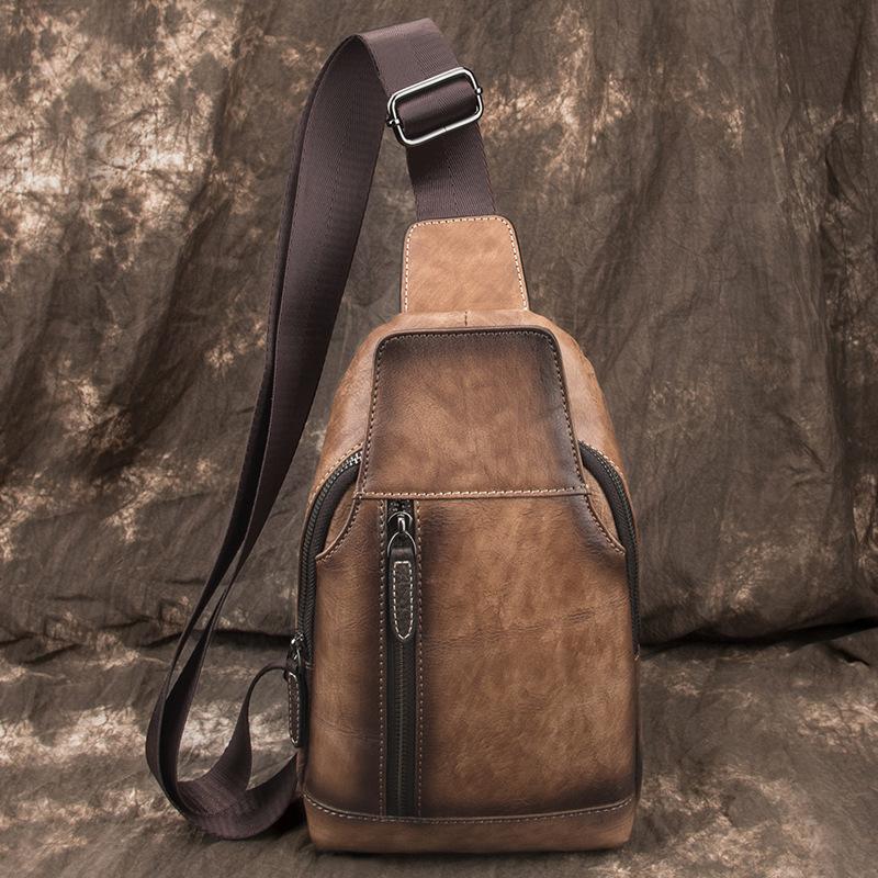 Style: Brown Cool LEATHER MENS 8 inches Light Brown Sling Bag One Shoulder Backpack Blue Chest Bag For Men