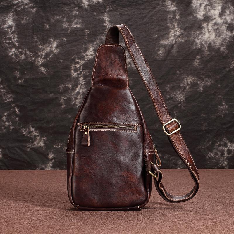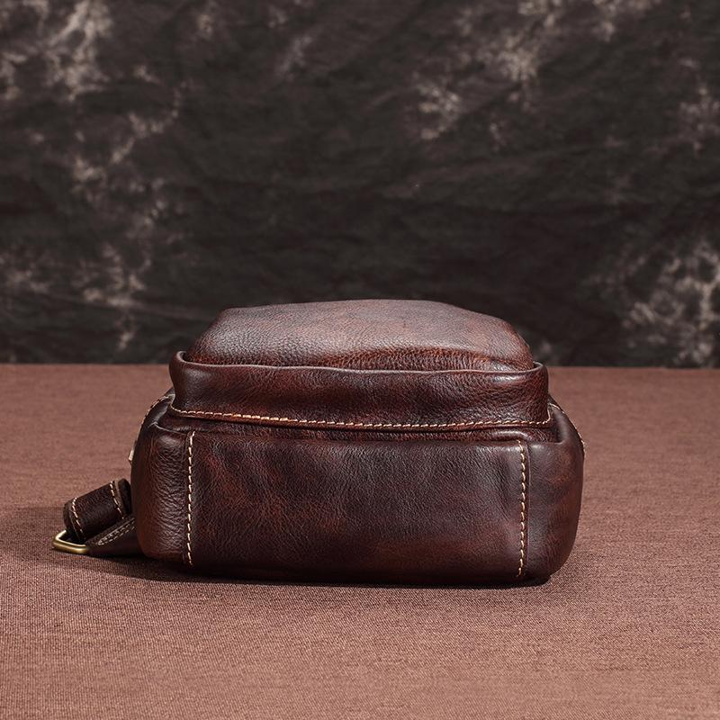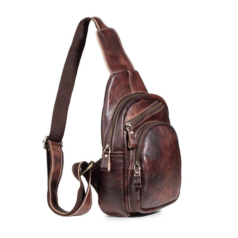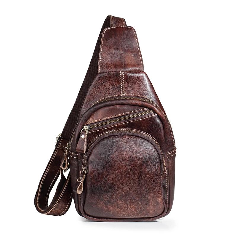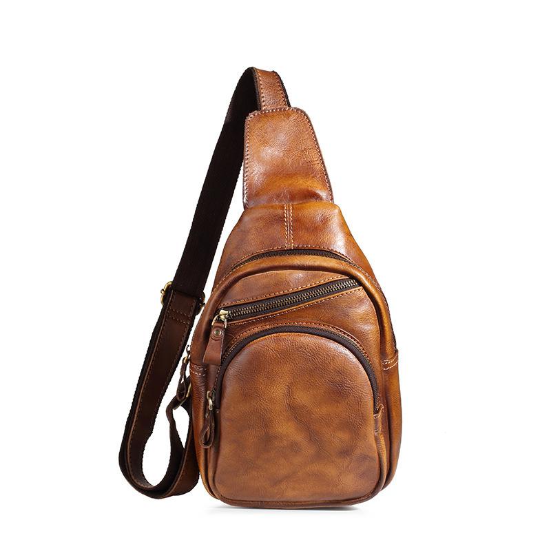Style: Brown Cool LEATHER MENS 8 inches Messenger Bag One Shoulder Backpack Yellow Chest Bag For Men
