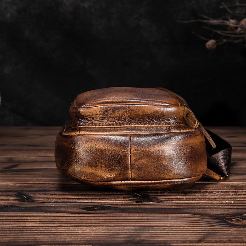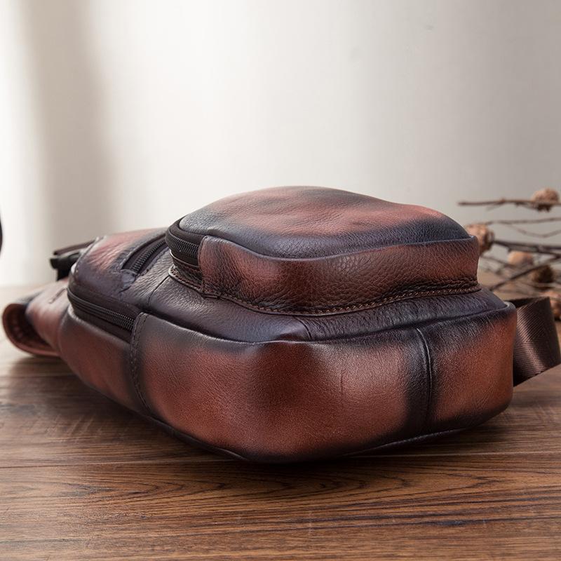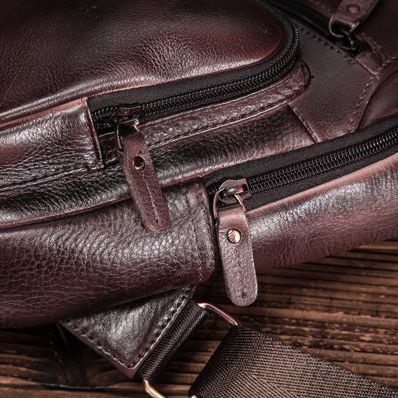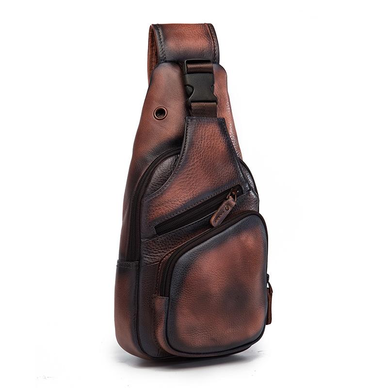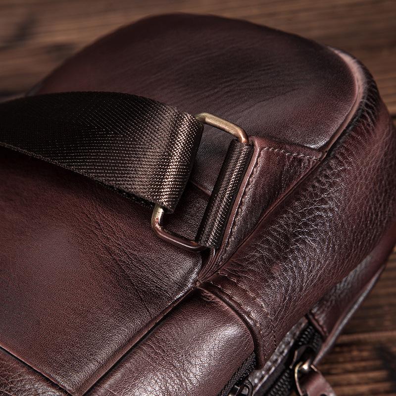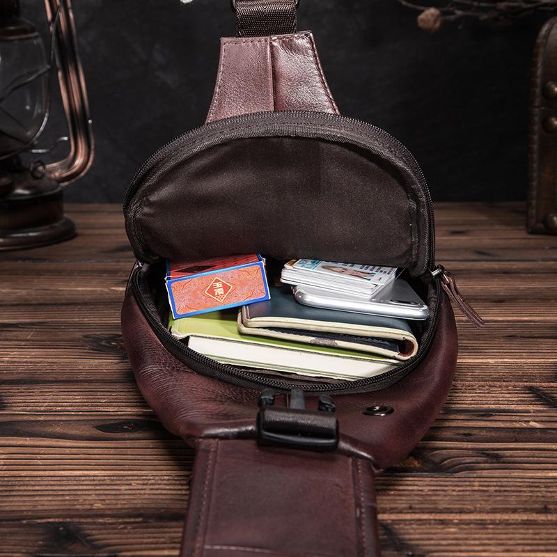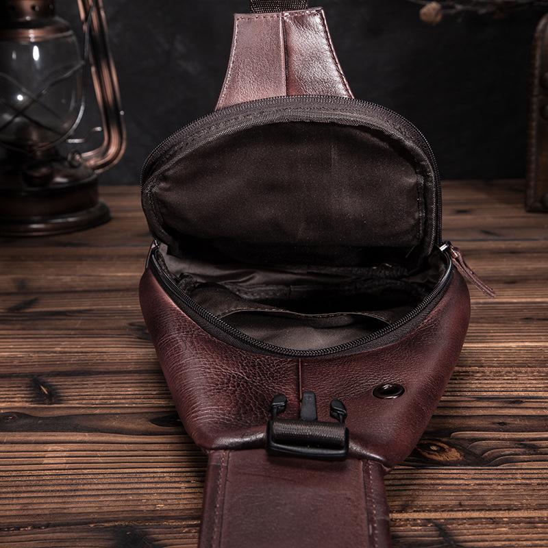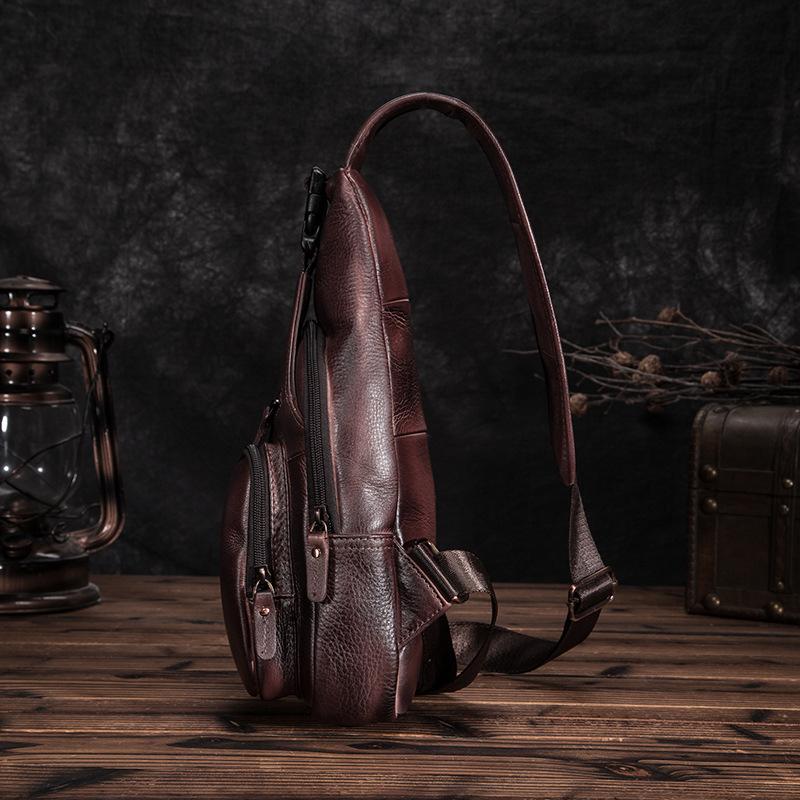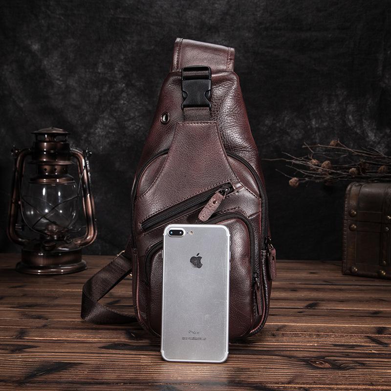 Style: Brown Cool LEATHER MENS 8 inches Sling Bag Light Brown Chest Bag Dark Brown One Shoulder Bag For Men