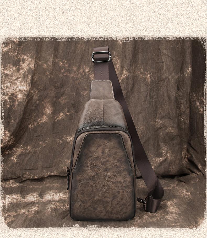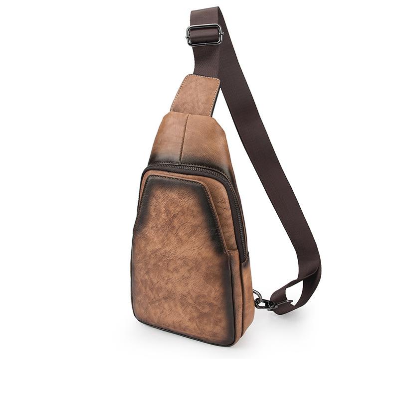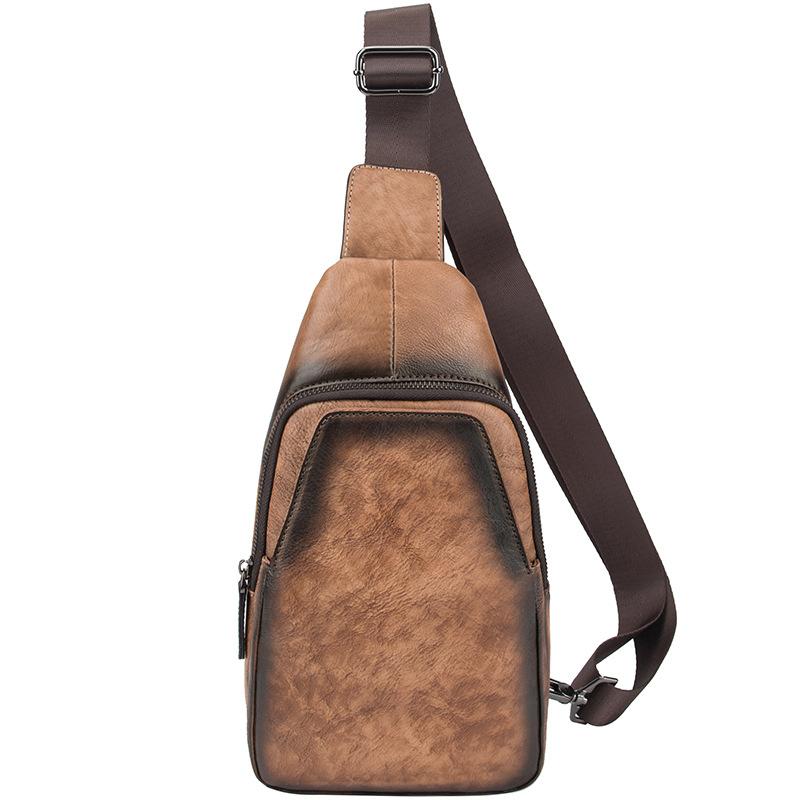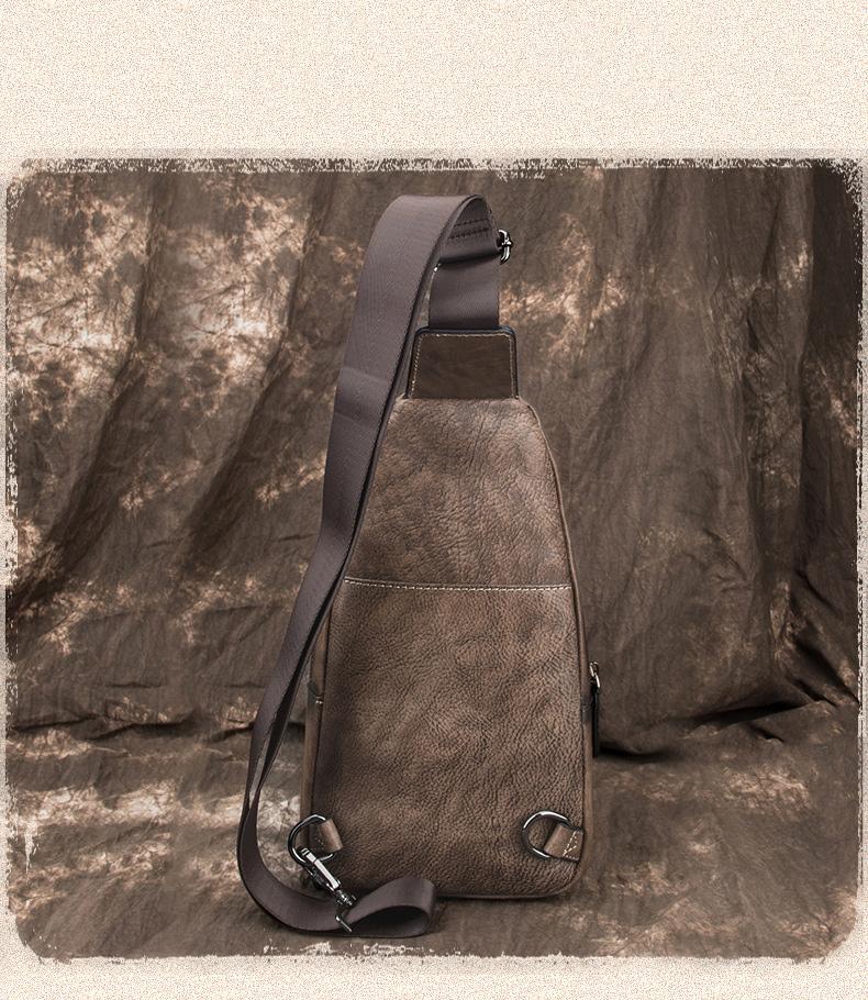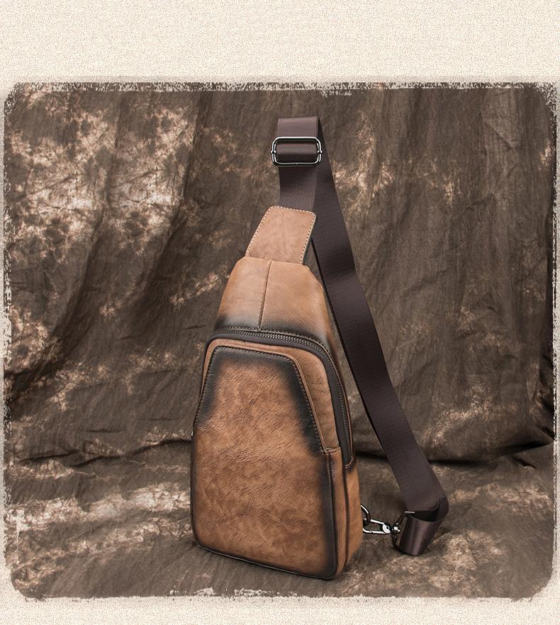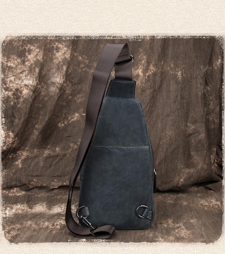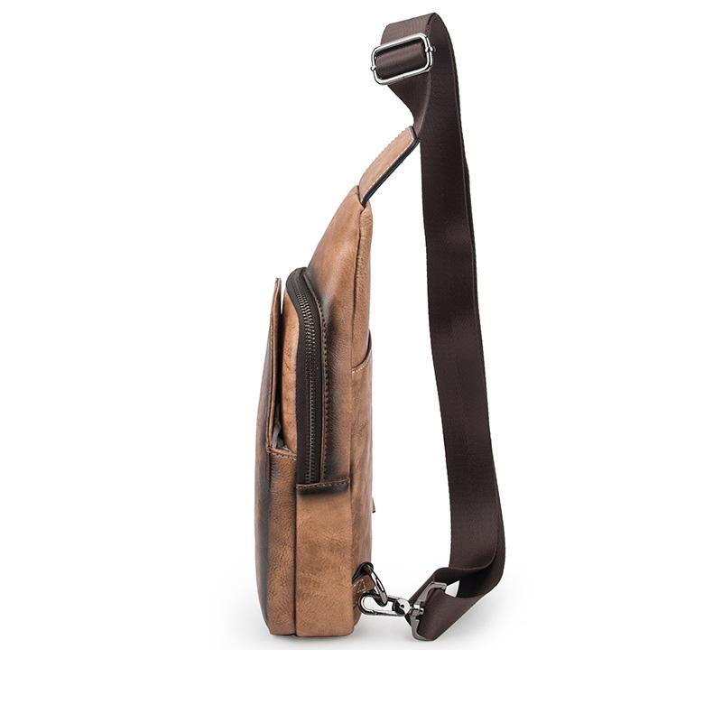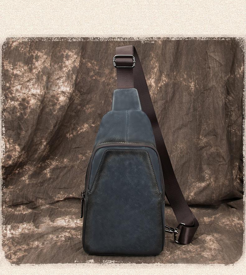 Style: Brown Cool LEATHER MENS 8 inches Tan Sling Bags One Shoulder Backpack Blue Chest Bag For Men
