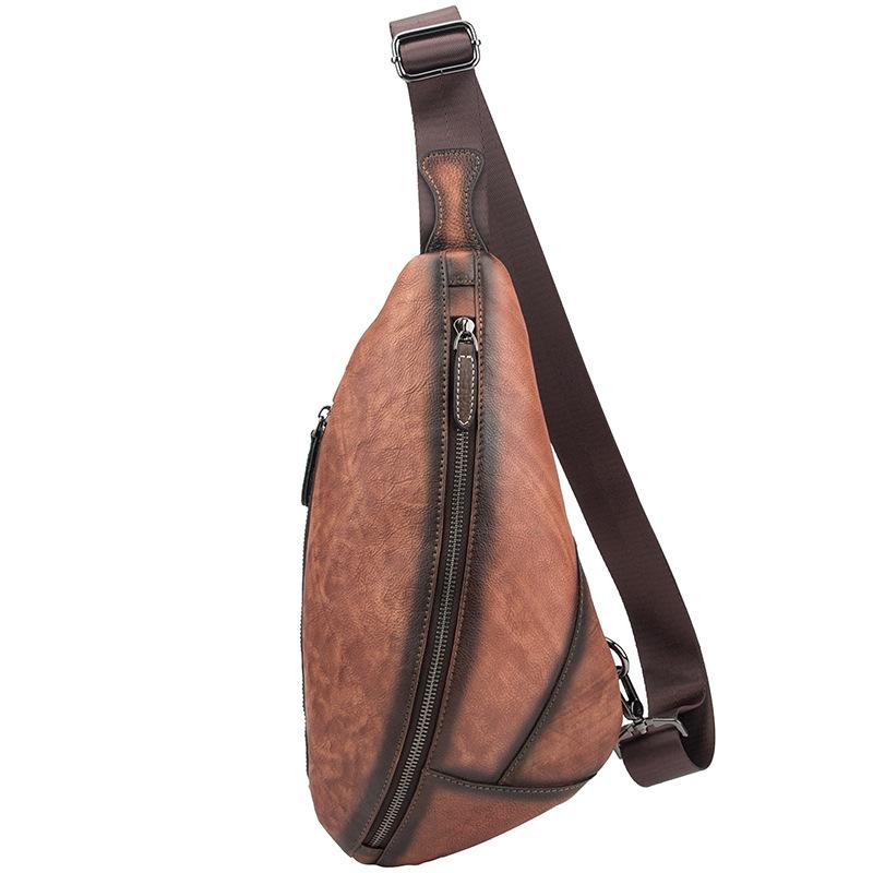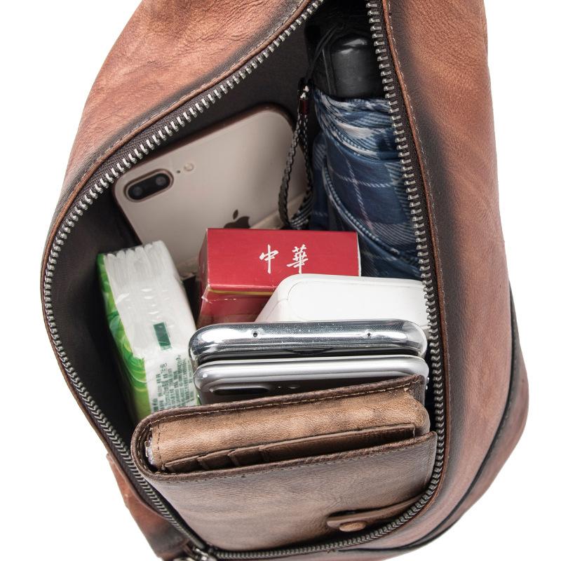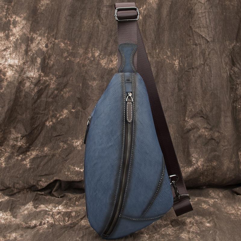 Style: Brown Cool LEATHER MENS Retro Light Brown Sling Bag One Shoulder Backpack Blue Chest Bag For Men