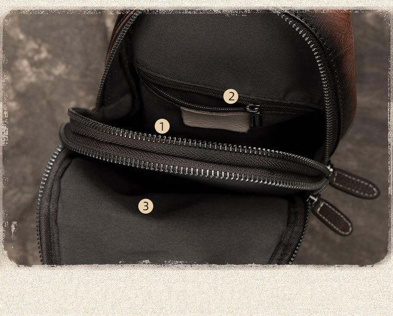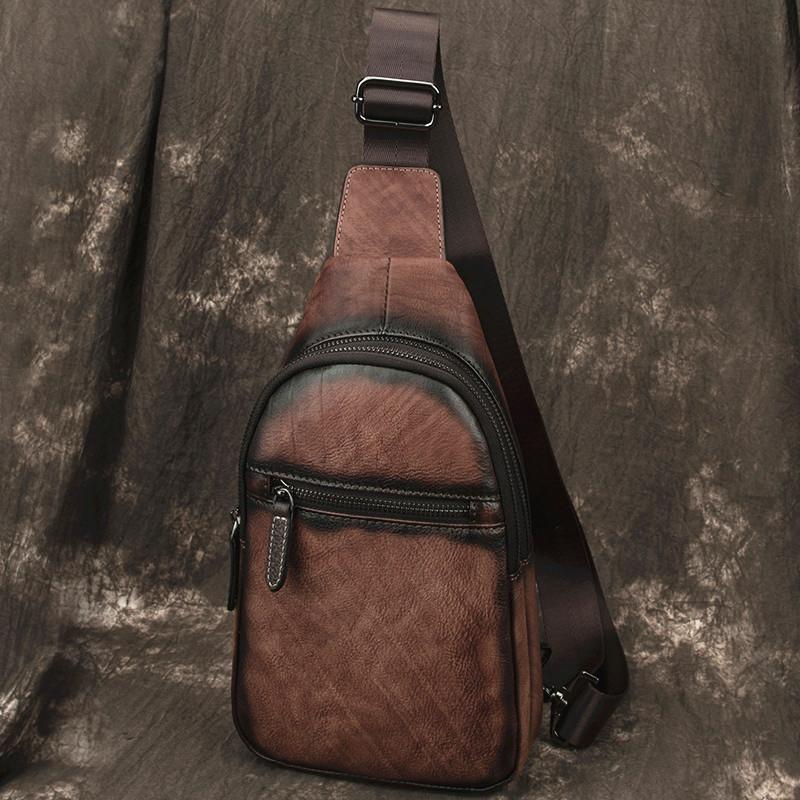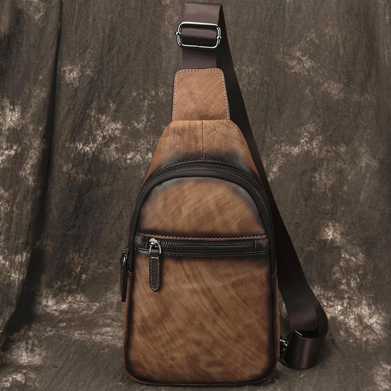 Brown Cool LEATHER MENS Sling Bag Chest Bag Khaki One Shoulder Bag For Men