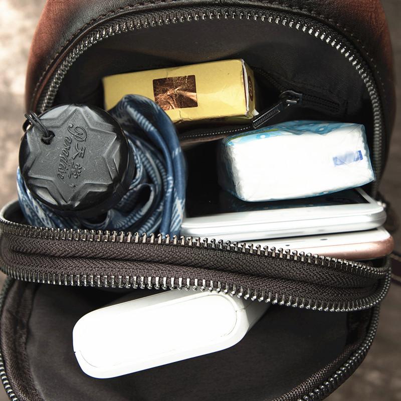 Style: Brown Cool LEATHER MENS Sling Bag Chest Bag Khaki One Shoulder Bag For Men