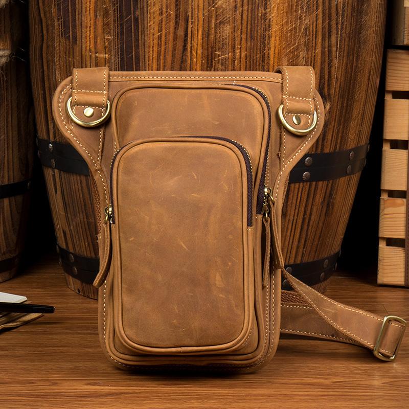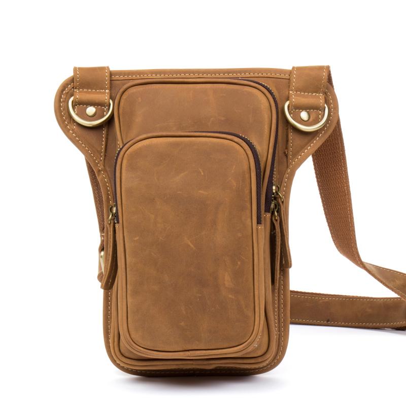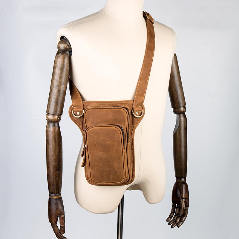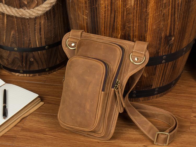 Brown Leather 8 inches Mens Small Messenger Bags Chest Bags Sling Bags for Men