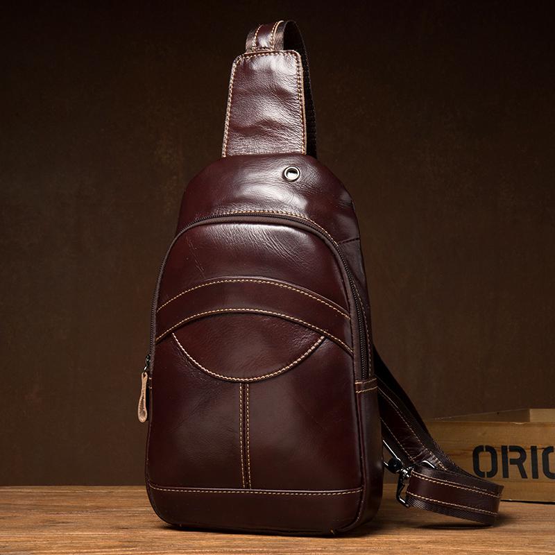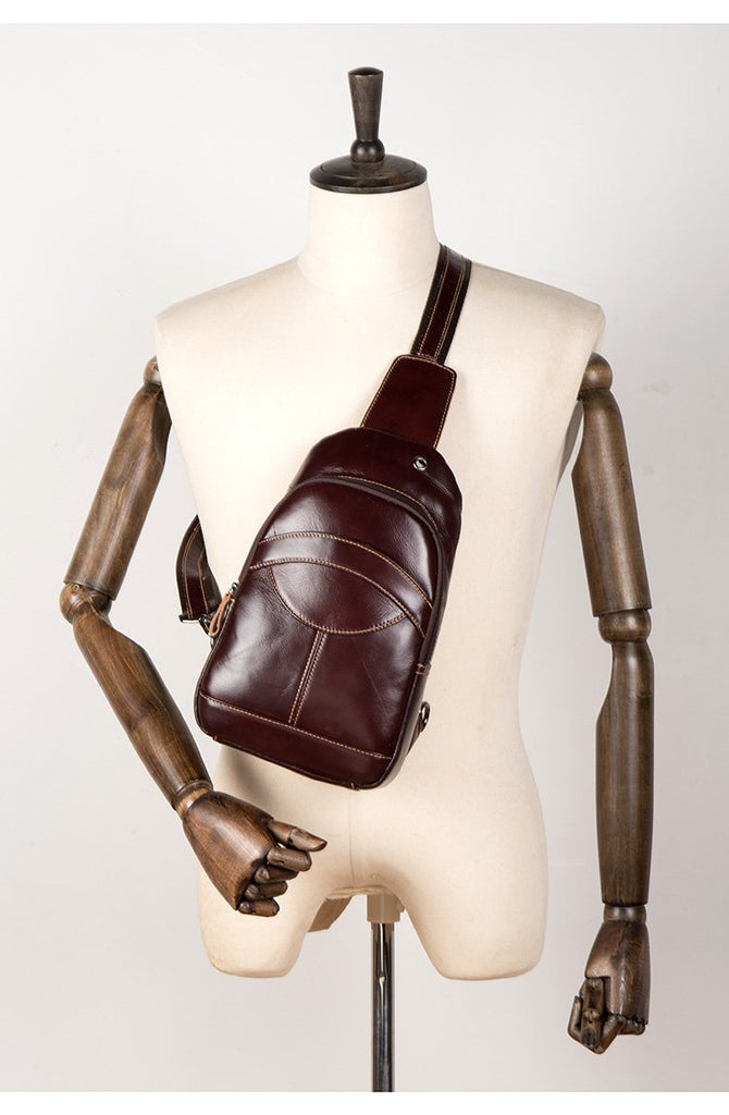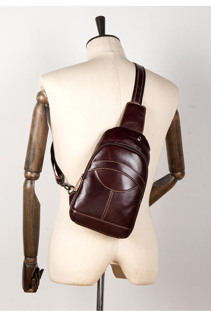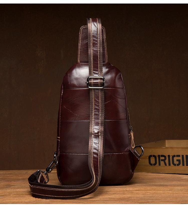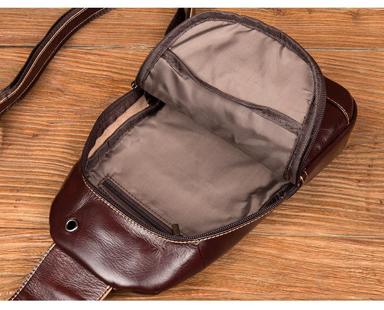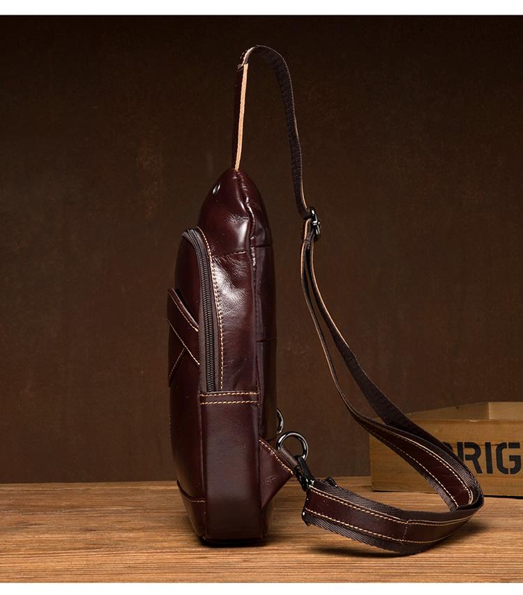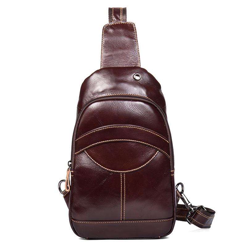 Style: Brown Leather Mens Cool Sling Bags Yellow Brown Crossbody Bag Chest Bag for menest Bag for men