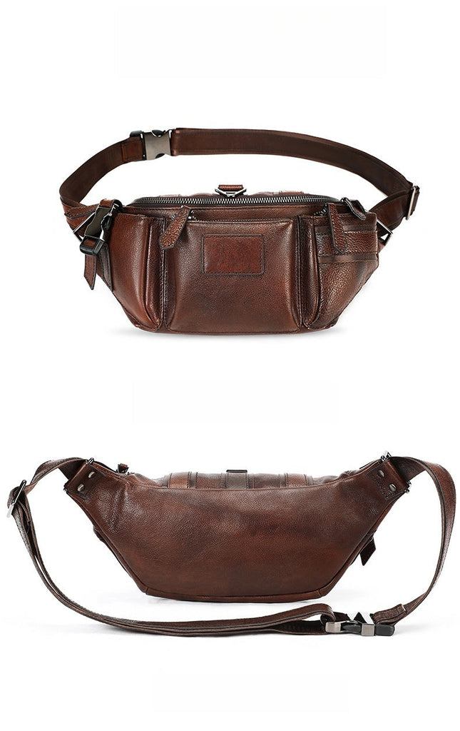 Design: Brown Leather Sling Bag Waist Bag for Men Mens Leather Sling Waist Bag