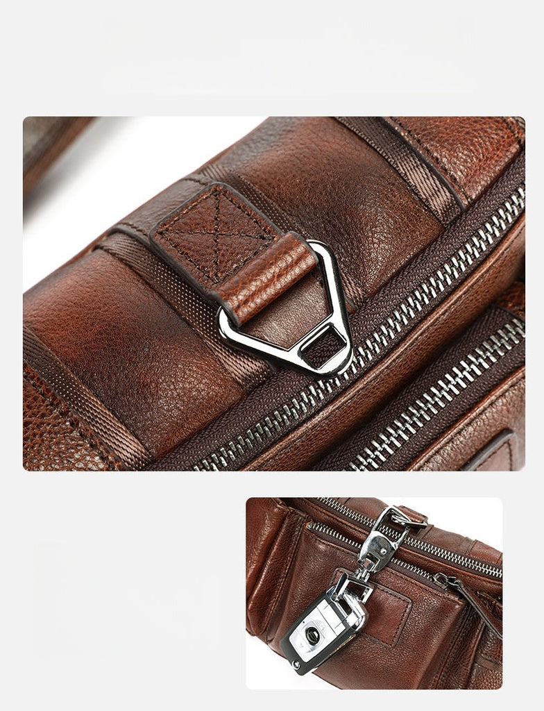 Discover the perfect union of retro style and modern functionality with our premium Leather Sling Waist Bag. This versatile Sling Bag Waist Bag is expertly crafted from genuine full-grain leather in two timeless shades: classic brown and rich coffee. Designed as a multi-functional fanny pack that seamlessly converts to a chest bag or crossbody sling, this stylish Sling Bag Waist Bag offers 32cm x 16cm x 14cm of intelligently organized space, making it ideal for daily commutes, urban exploration, travel, and hands-free adventures.