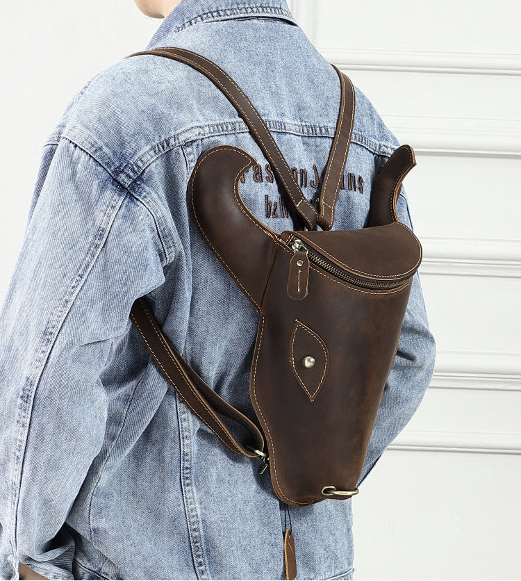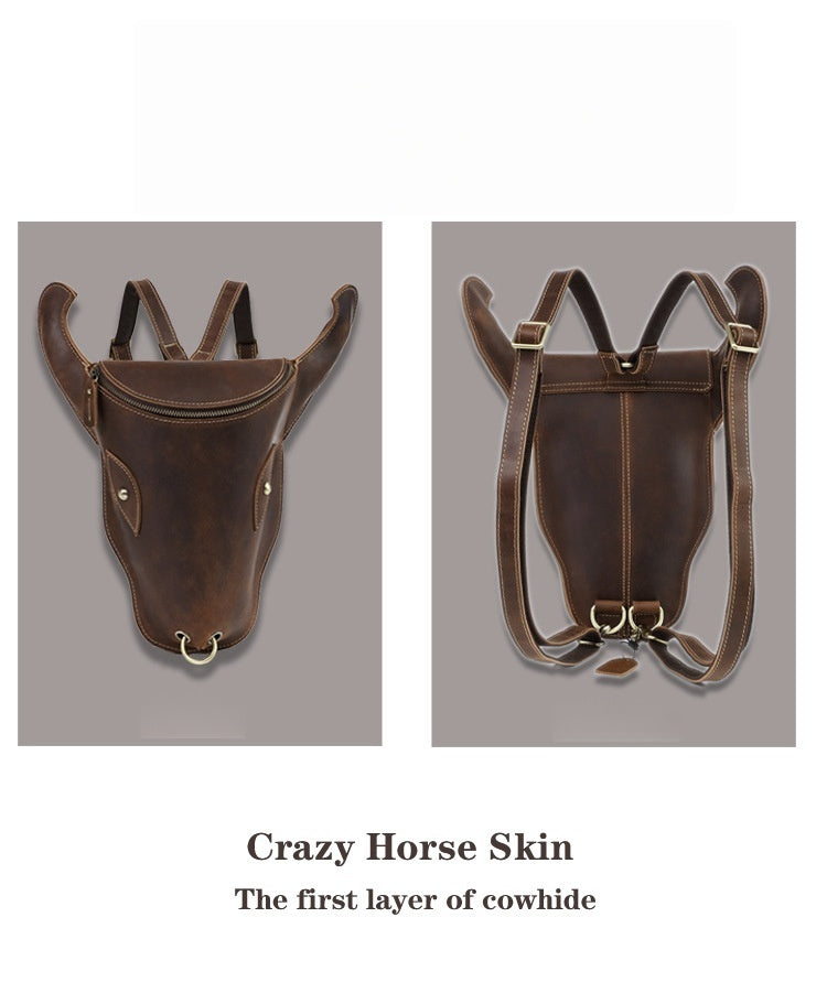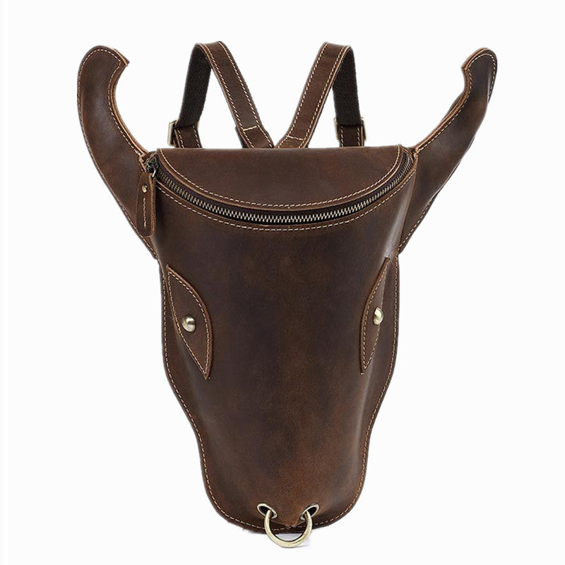 Style: Brown Ox Bull Head Leather Backpack Mens Cool Leather Backpack