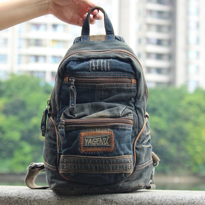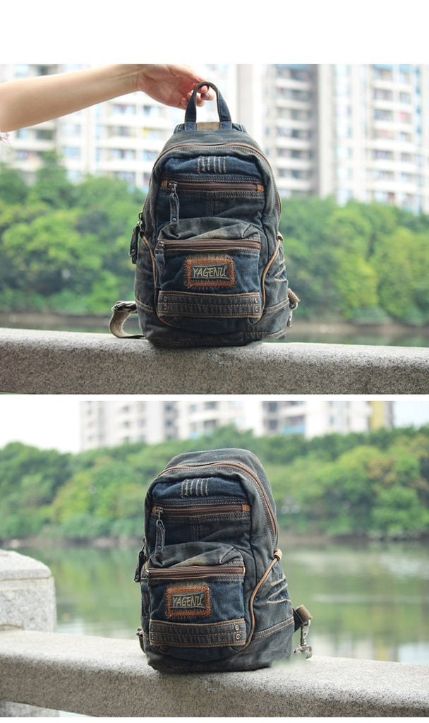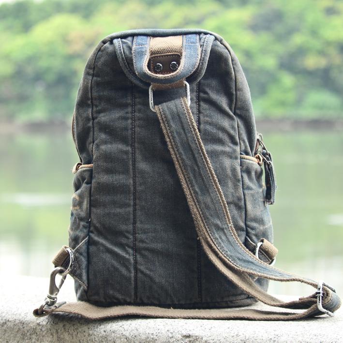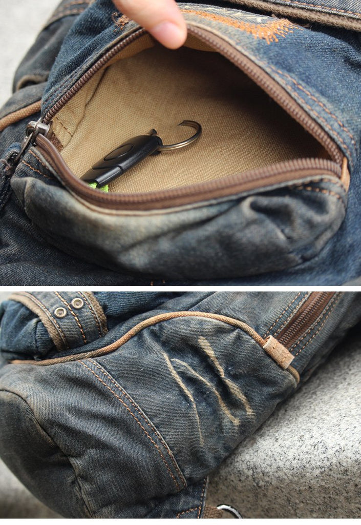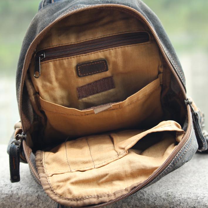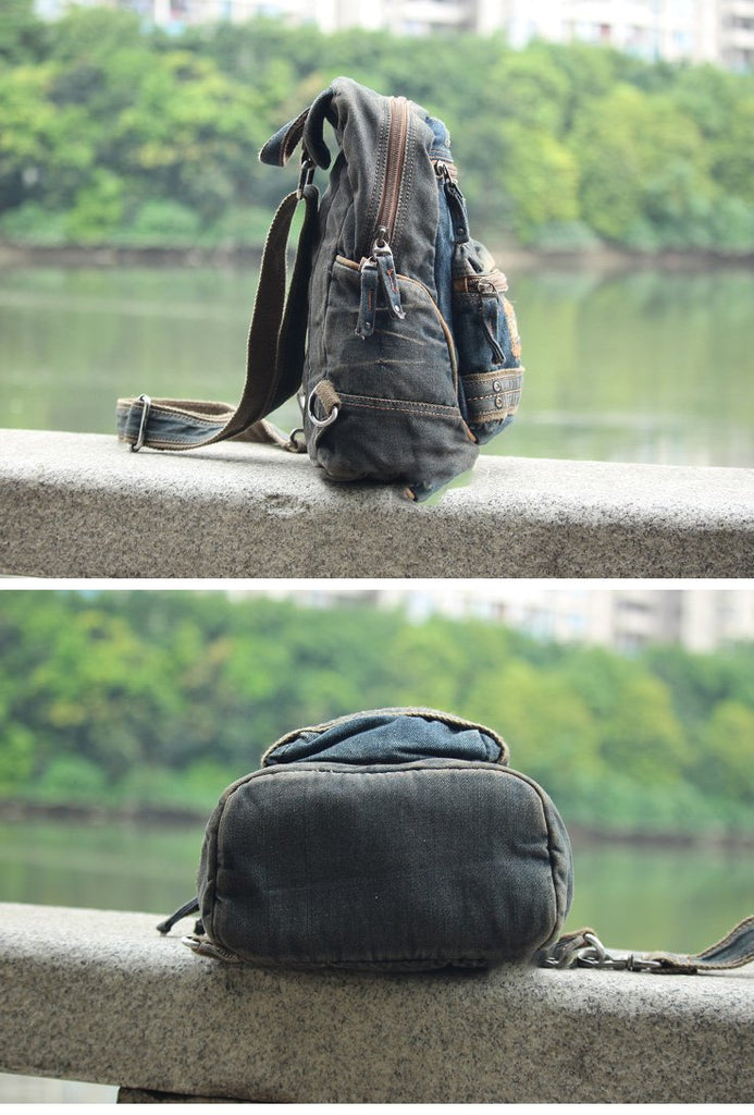 Style: Jean Vintage Blue Mens Large Sling Bag Chest Bag Jean One Shoulder Backpacks For Men