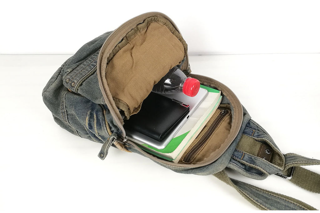 Denim Blue Mens Large Sling Bag Chest Bag Chest Pack Vintage Jean Crossbody Sling Bag For Men