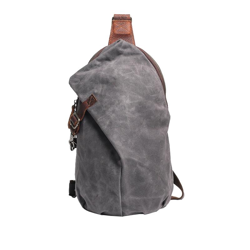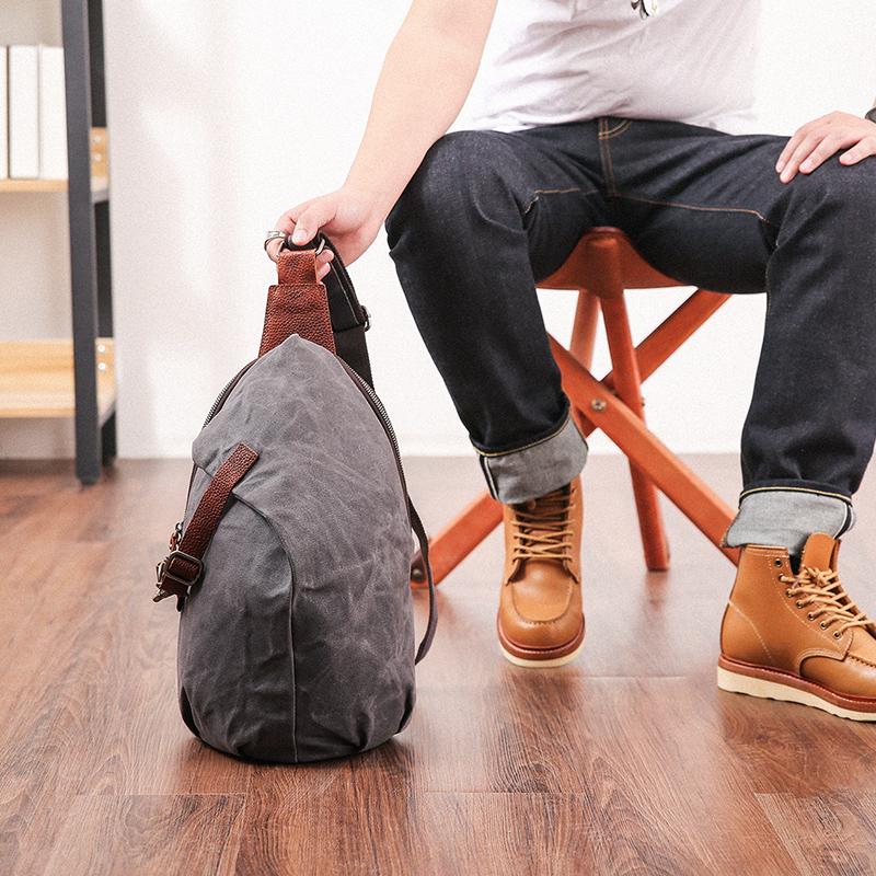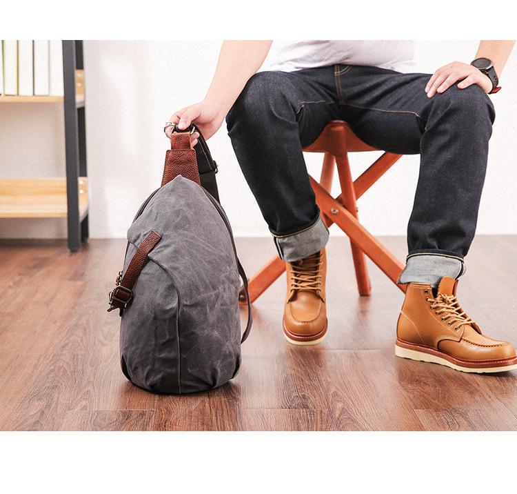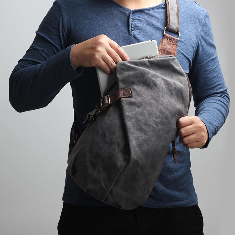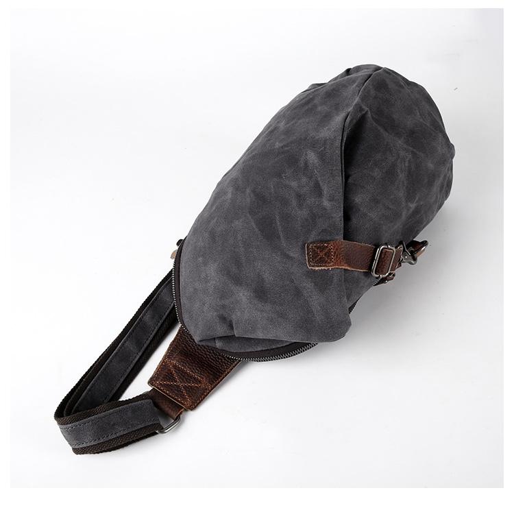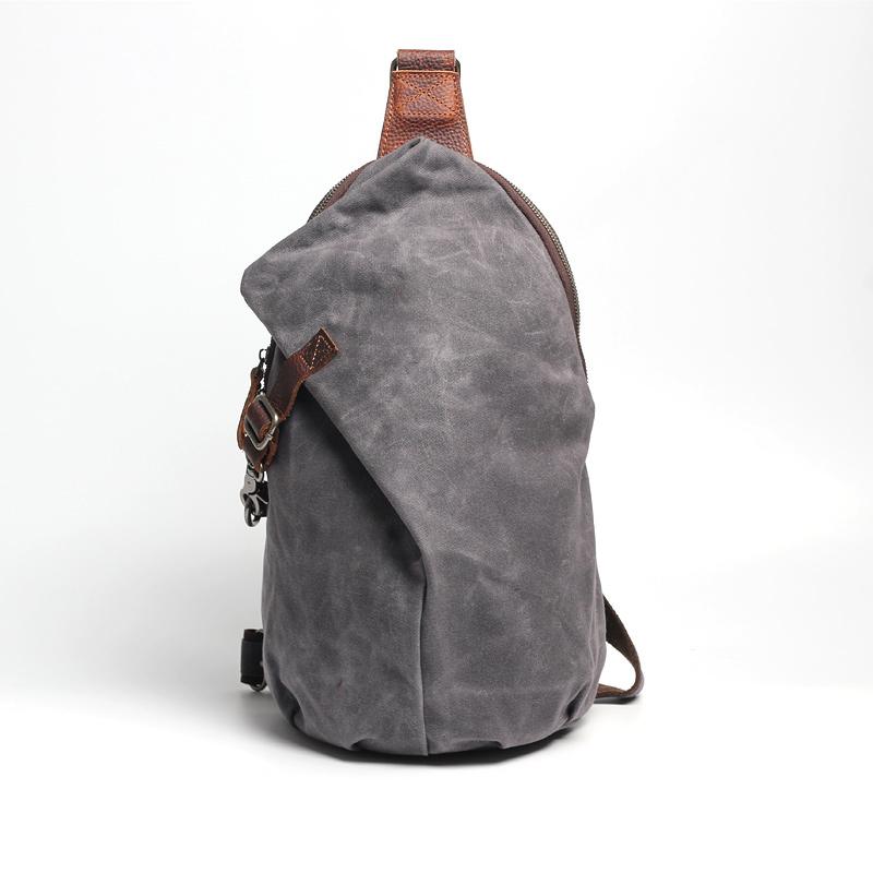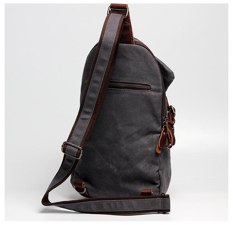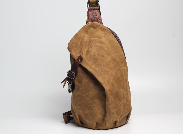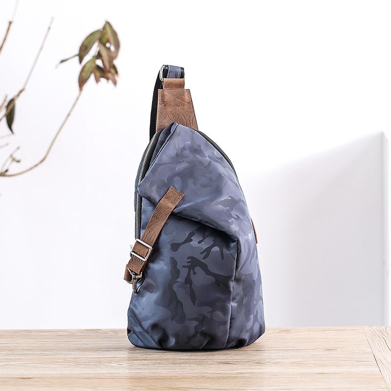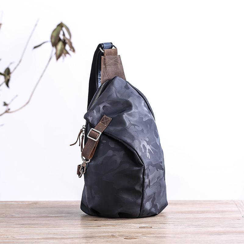 Design: Canvas Leather Mens Camouflage Chest Bag One Shoulder Backpack Khaki Sling Bag for Men
