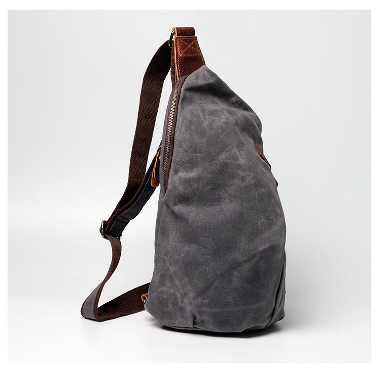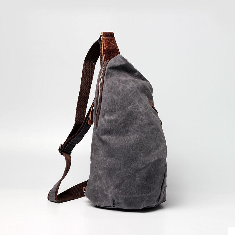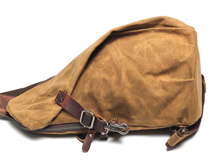 Style: Canvas Leather Mens Camouflage Chest Bag One Shoulder Backpack Khaki Sling Bag for Men