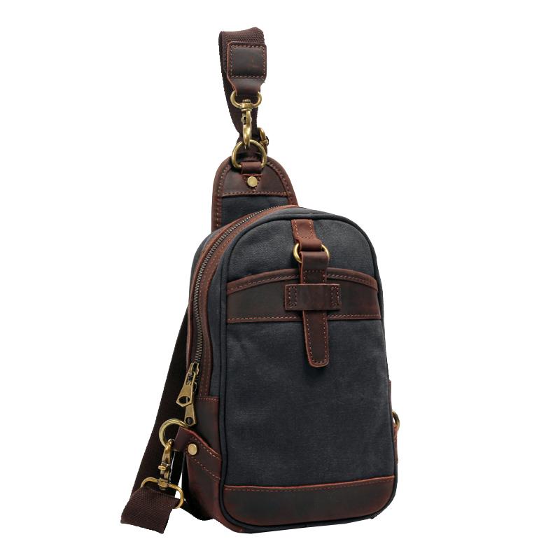 Design: Canvas Leather Mens Green Chest Bag One Shoulder Backpack Gray Sling Bag for Men