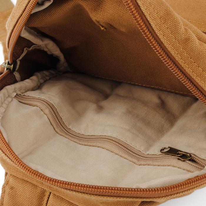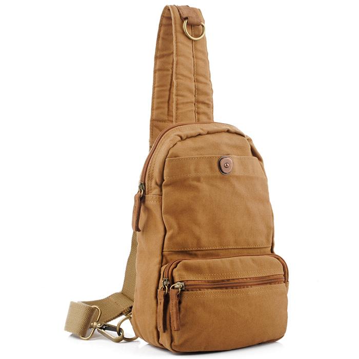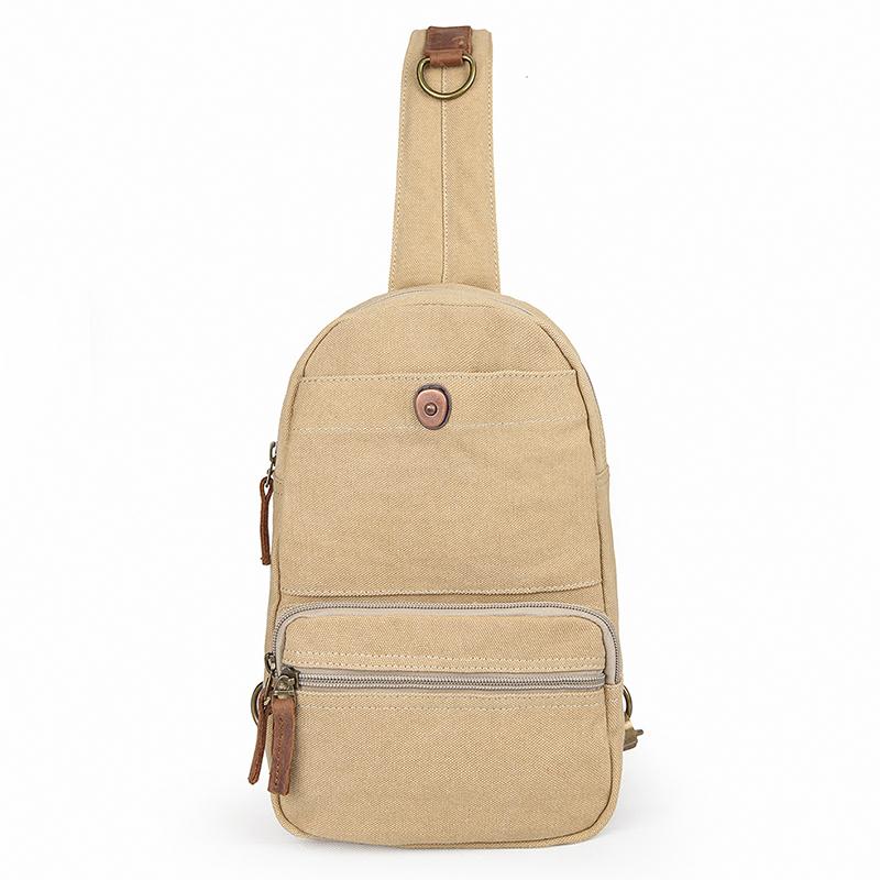 Style: Canvas Leather Mens Portable Khaki Chest Bag Messenger Bag Light Brown One Shoulder Bag for Men