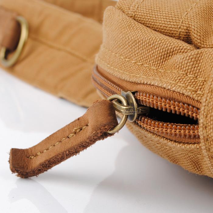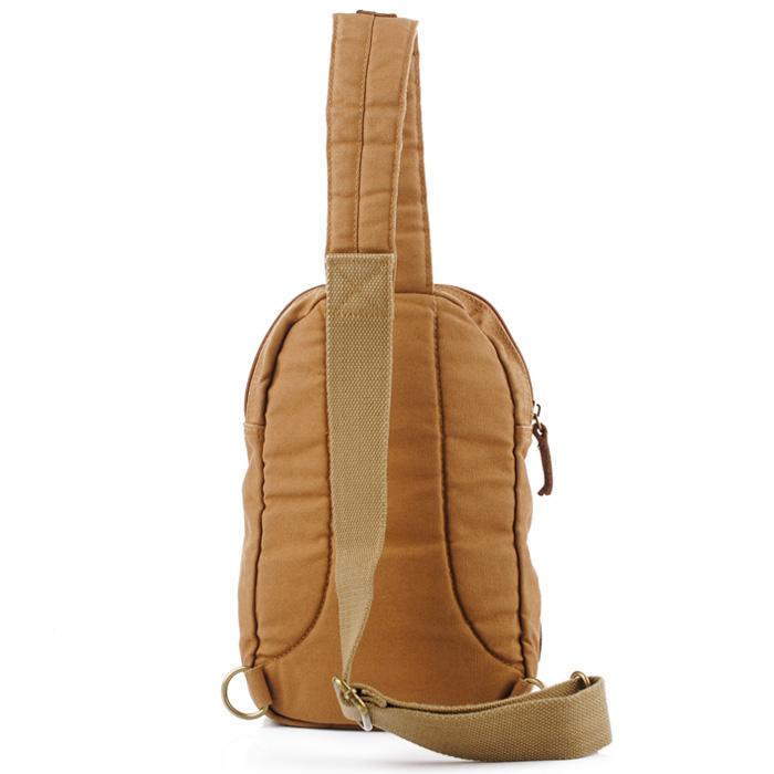 Design: Canvas Leather Mens Portable Khaki Chest Bag Messenger Bag Light Brown One Shoulder Bag for Men