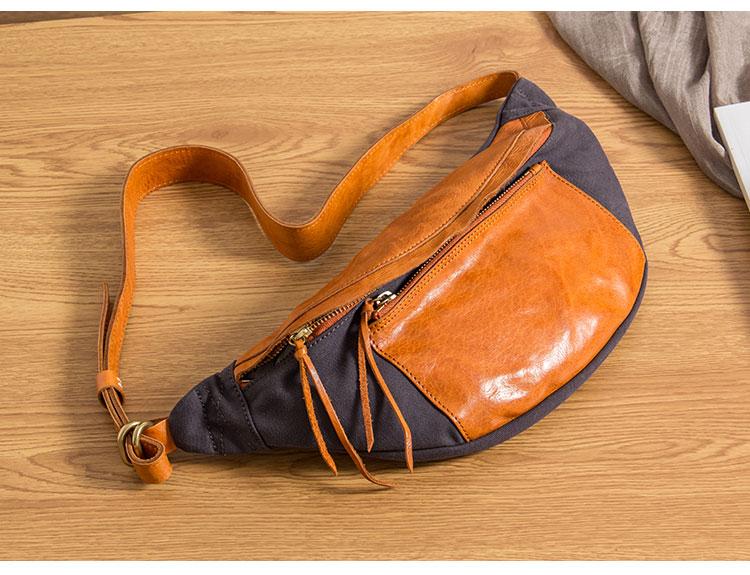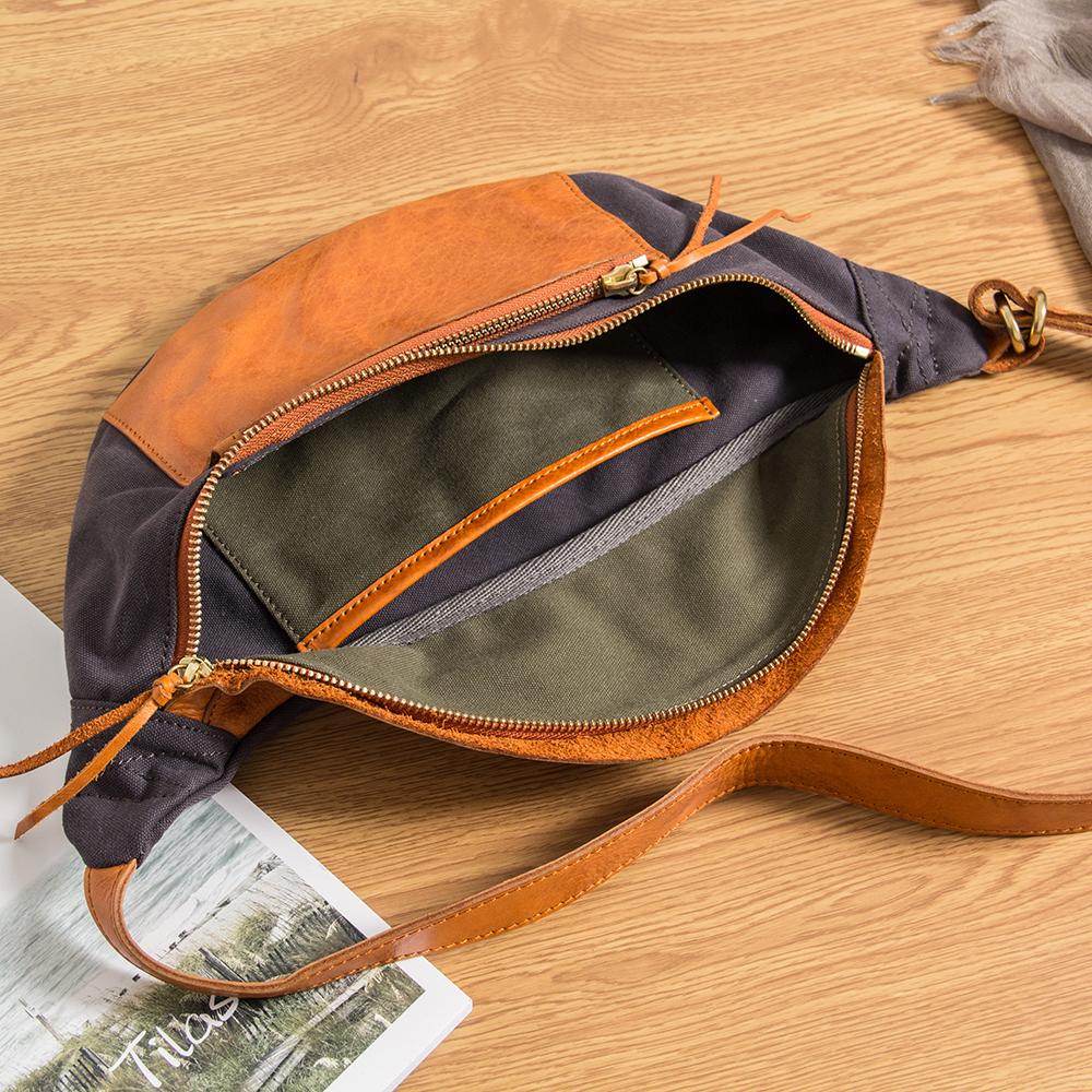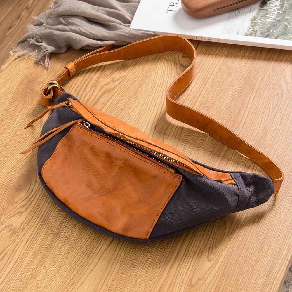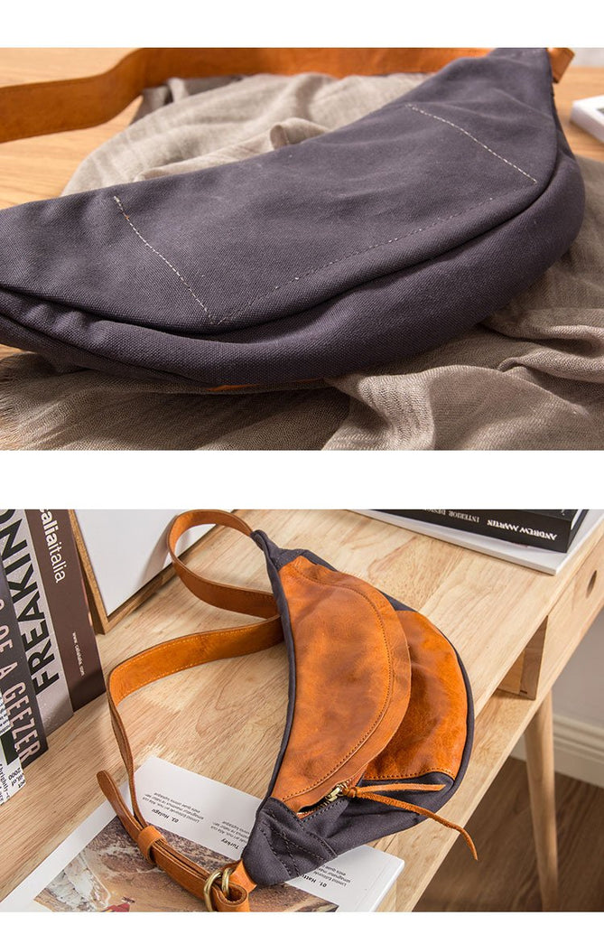 Style: Canvas Leather Mens Sling Bag Dark Gray Multi-function Chest Bag One Shoulder Backpack for Men