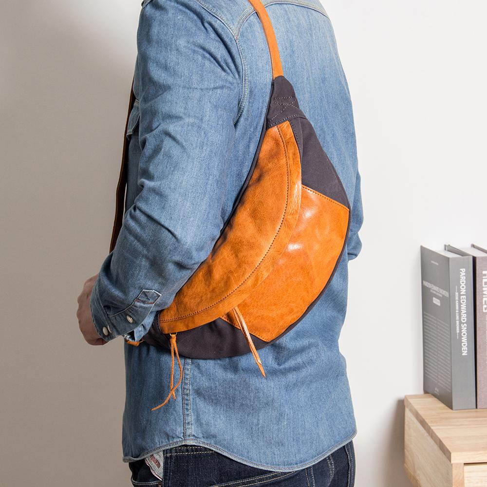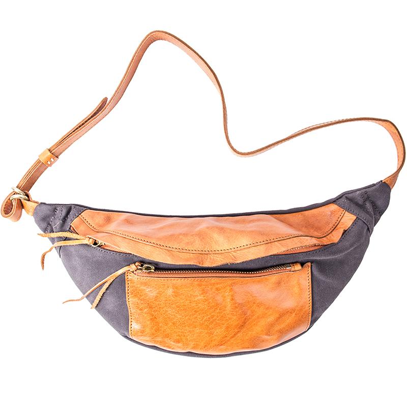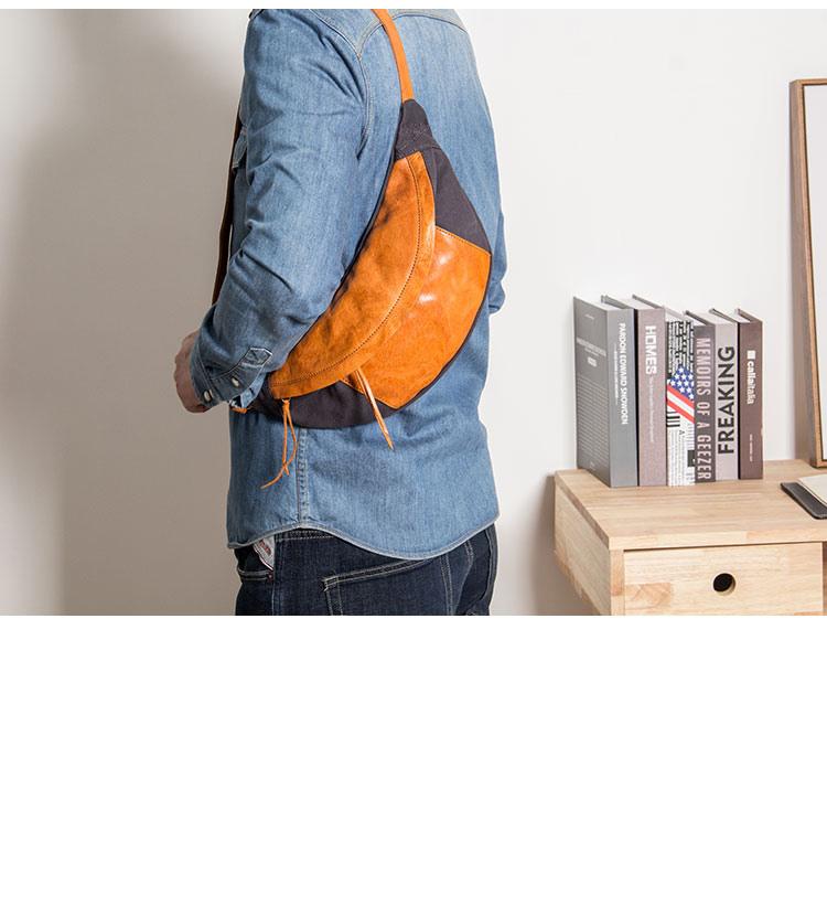 Design: Canvas Leather Mens Sling Bag Dark Gray Multi-function Chest Bag One Shoulder Backpack for Men