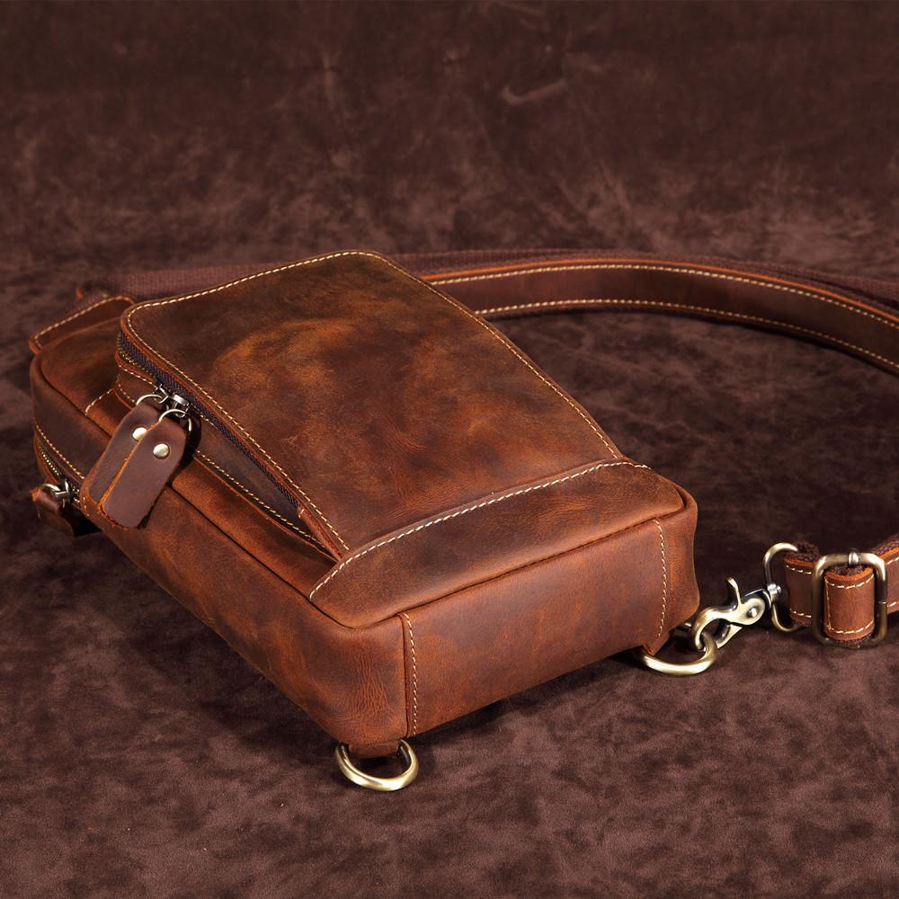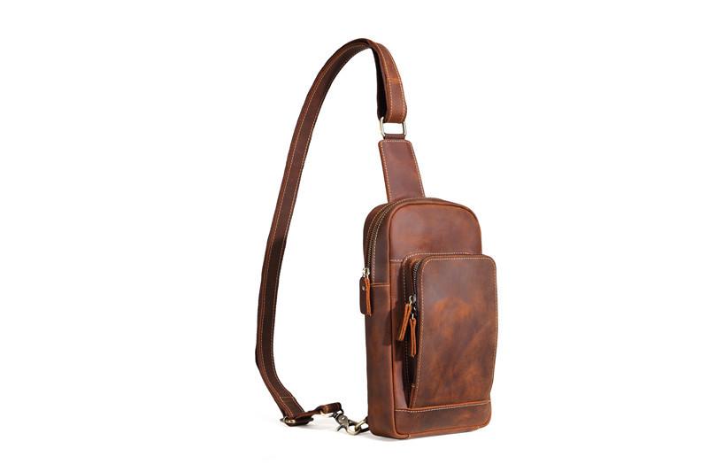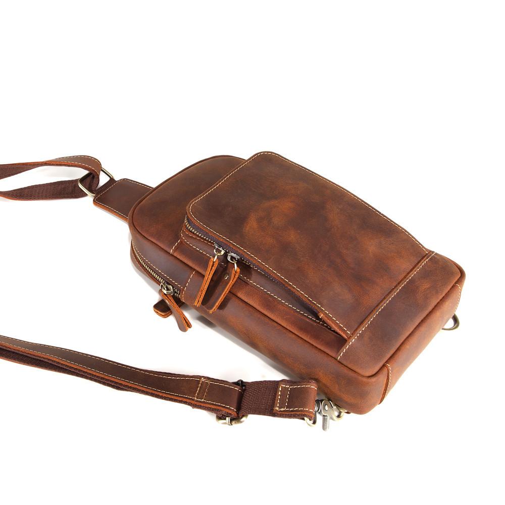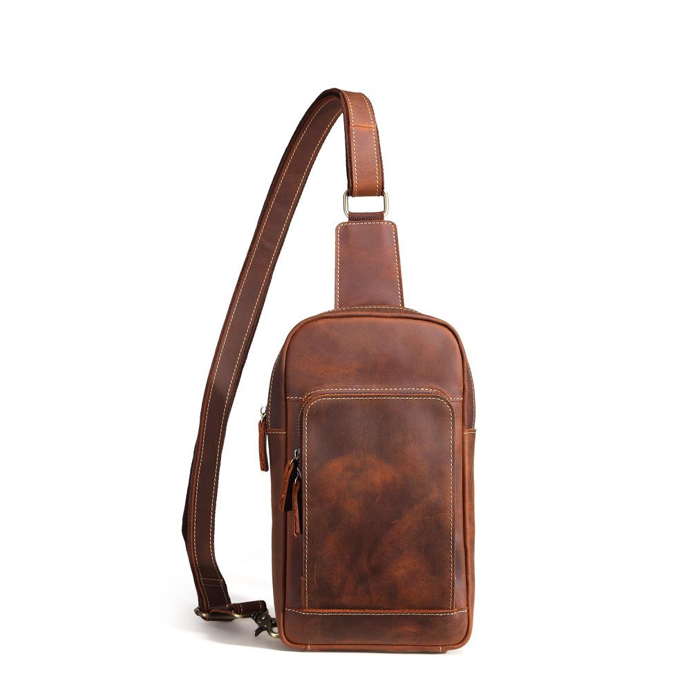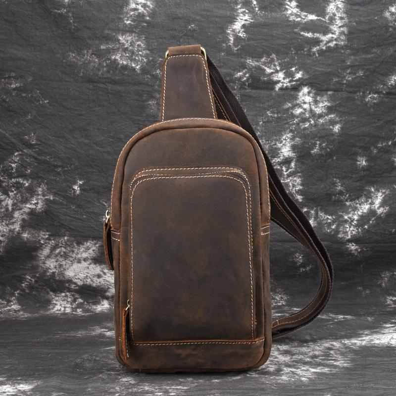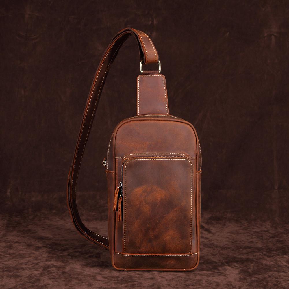 Style: Genuine Leather Cool Chest Bag Sling Bag Crossbody Bag Travel Bag Hiking Bag For Mens