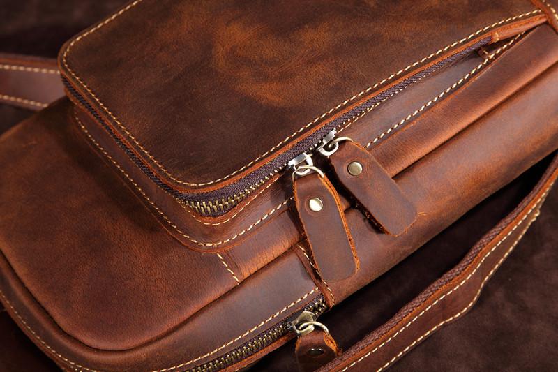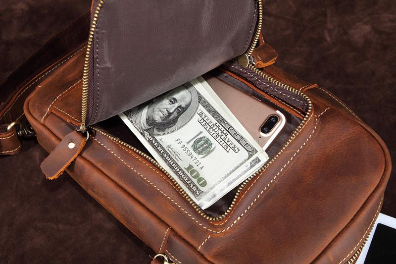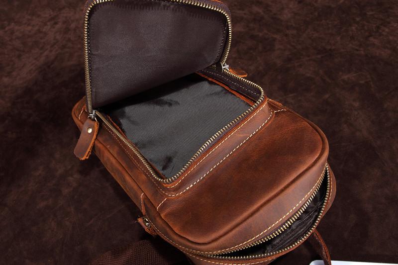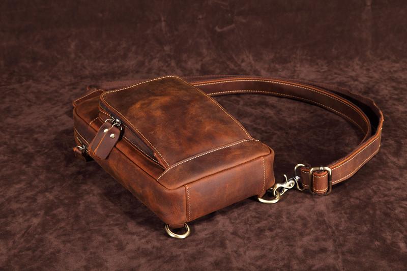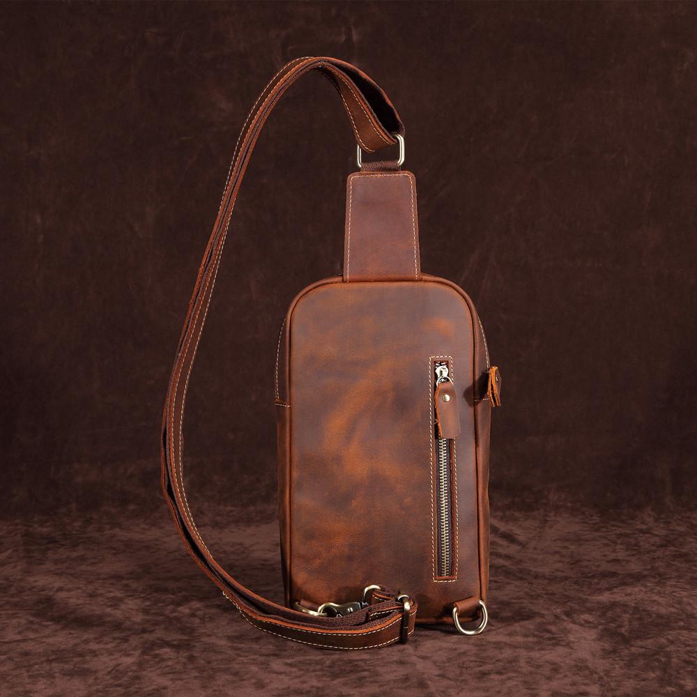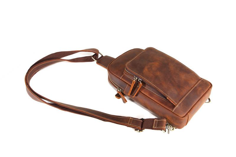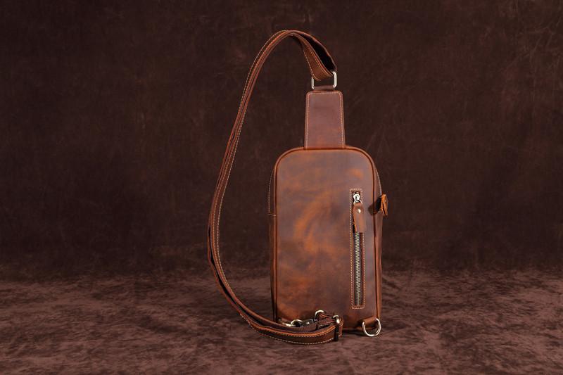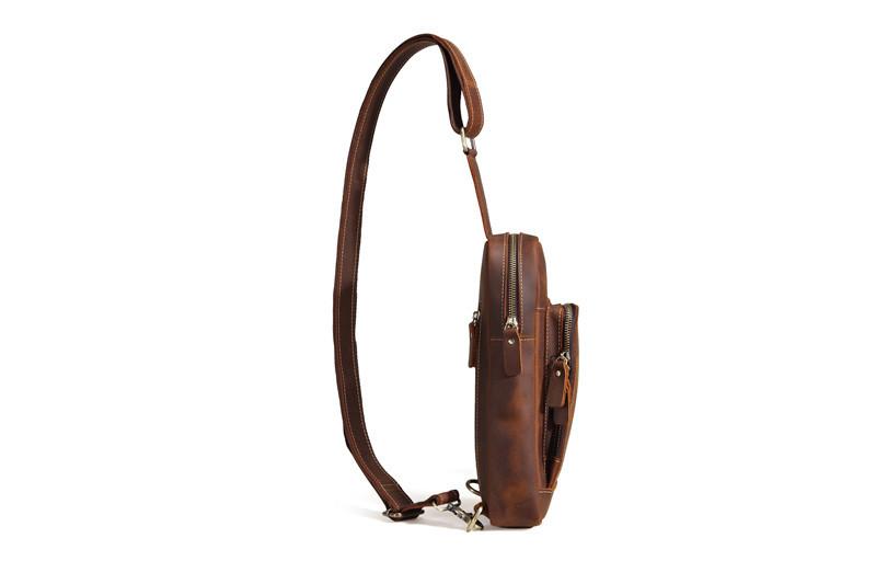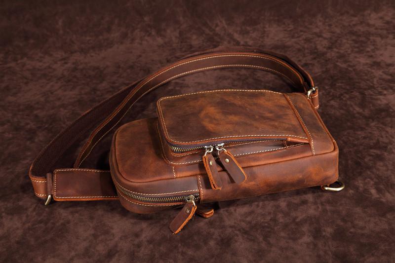 Style: Genuine Leather Cool Chest Bag Sling Bag Crossbody Bag Travel Bag Hiking Bag For Mens