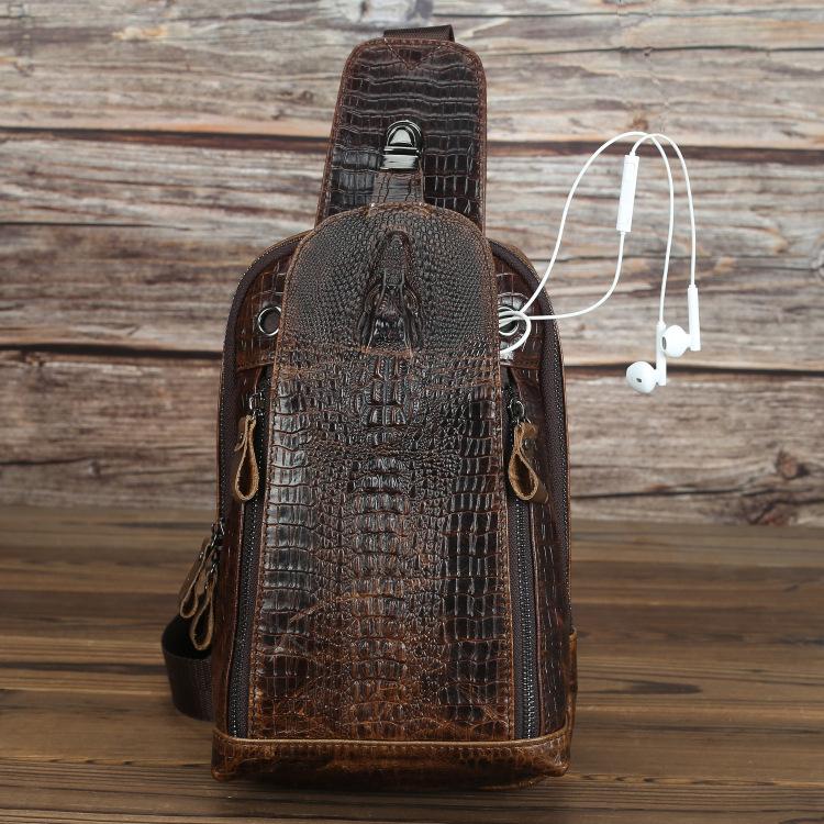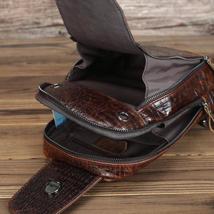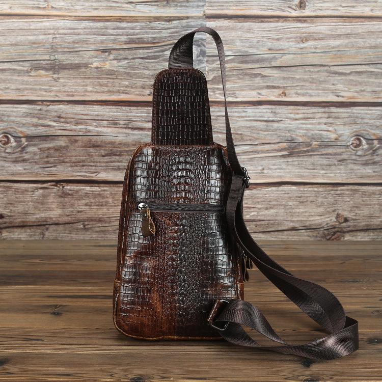 Crocodile Pattern Leather Backpack Men's Sling Bag Chest Bag Coffee One shoulder Backpack Sling Pack For Men