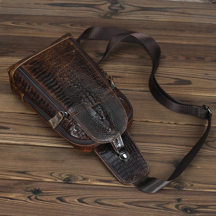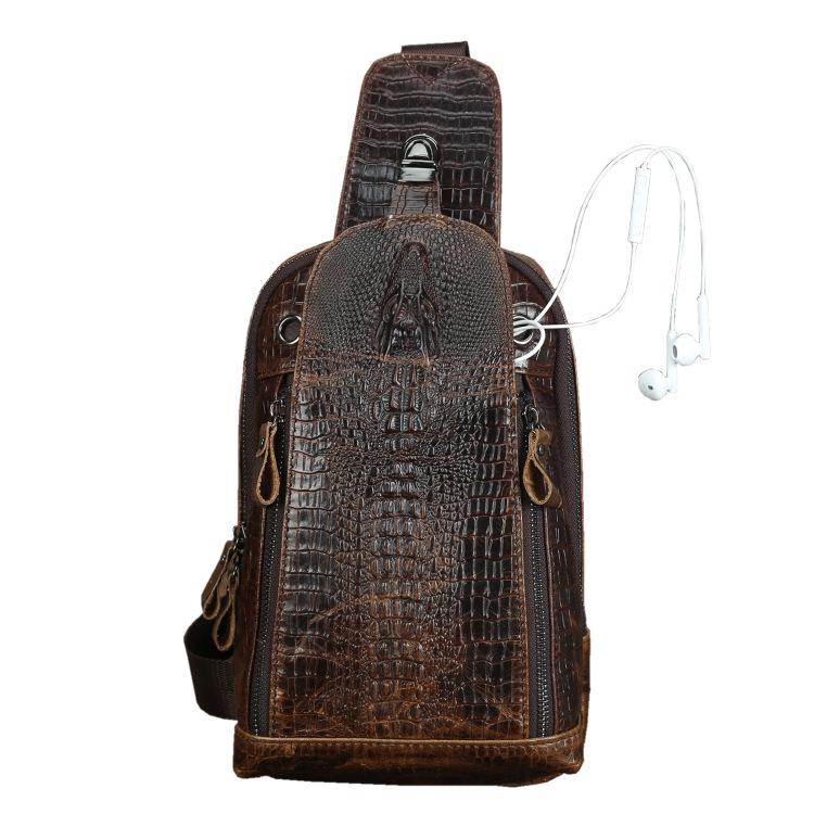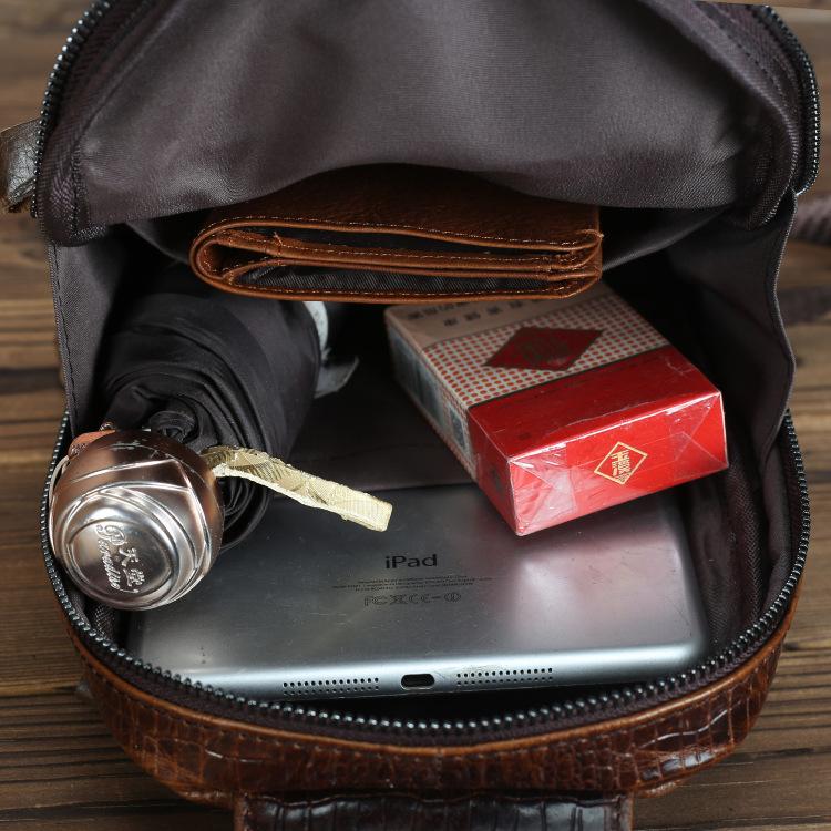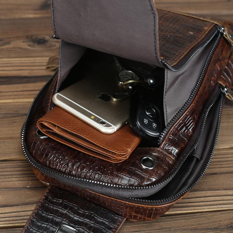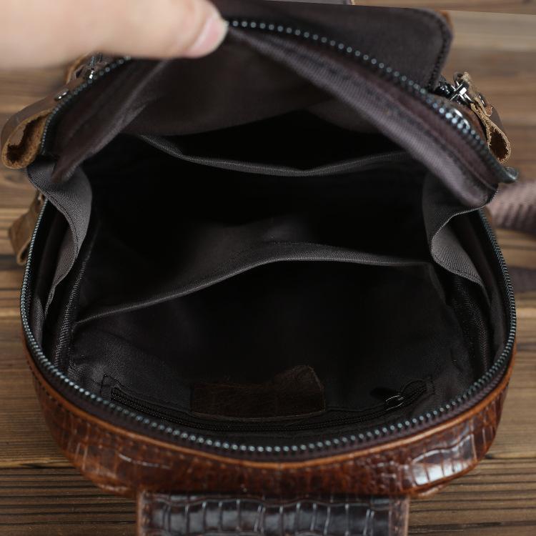 Style: Coffee Crocodile Pattern Leather Backpack Men's 8-inch Sling Bag Chest Bag One shoulder Backpack Sports Bag For Men