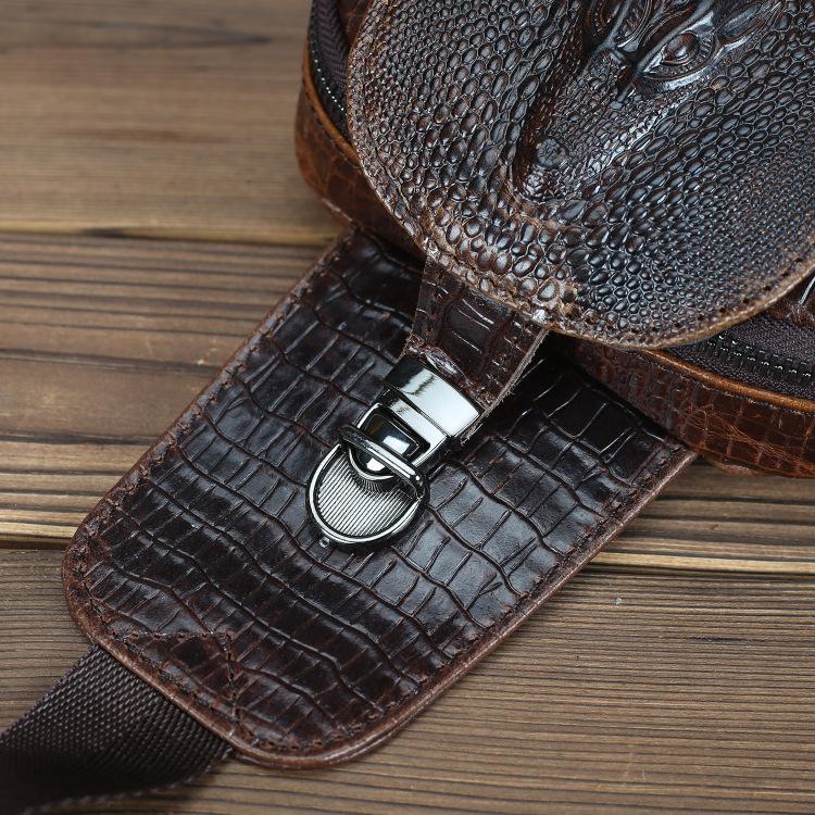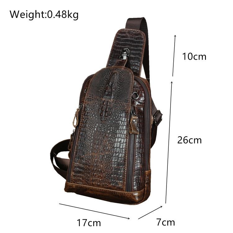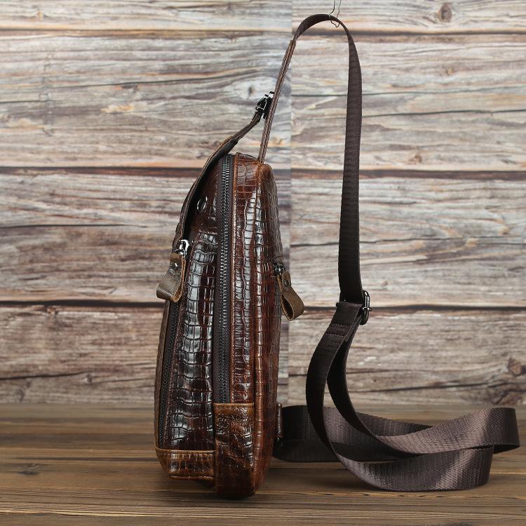 Design: Coffee Crocodile Pattern Leather Backpack Men's 8-inch Sling Bag Chest Bag One shoulder Backpack Sports Bag For Men