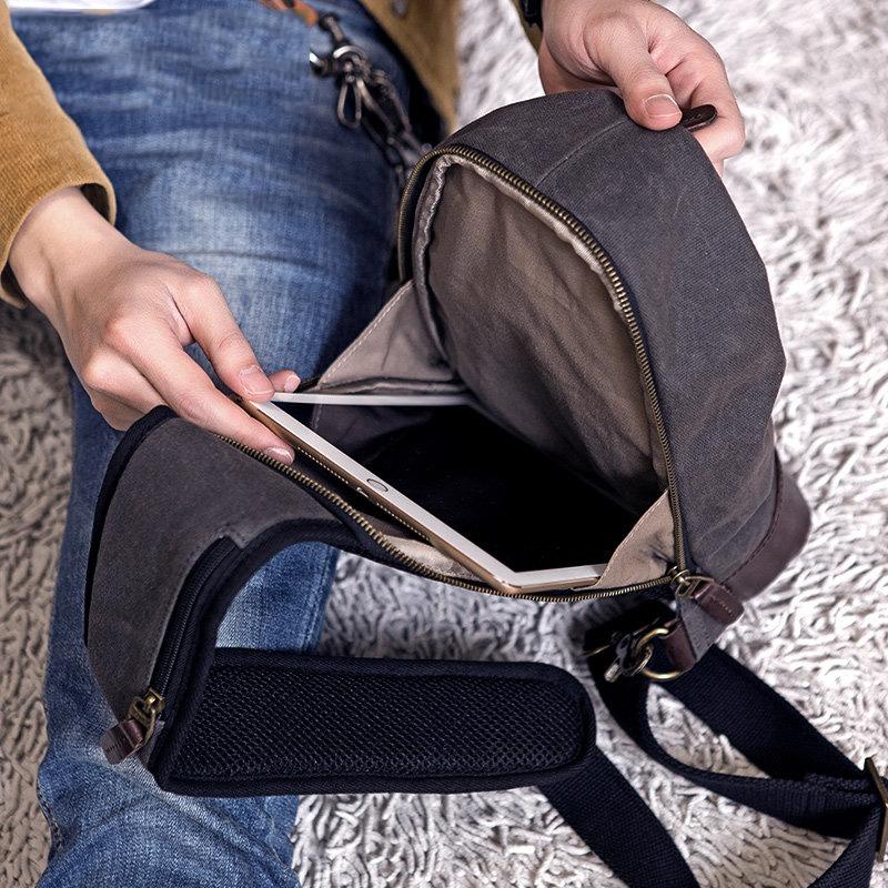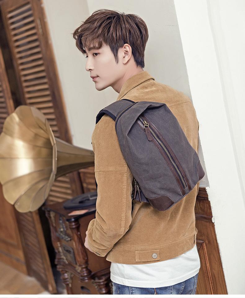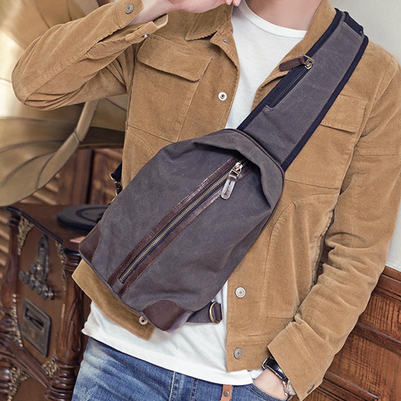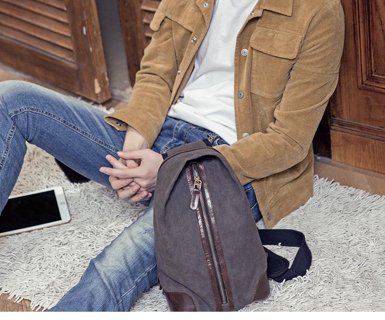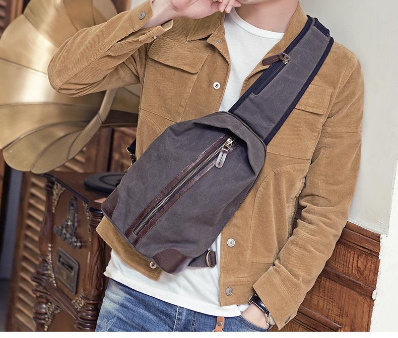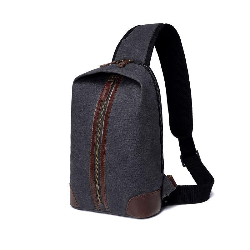 Style: Cool Black Canvas Backpack Men's Sling Bag Chest Bag One shoulder Backpack Sports Bag For Men