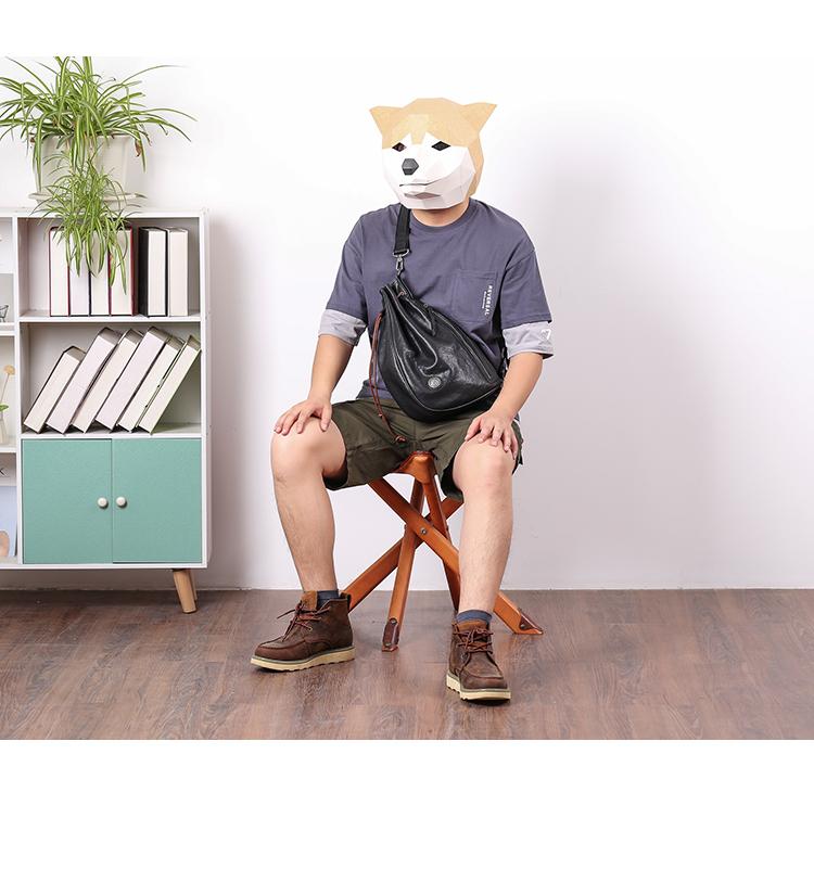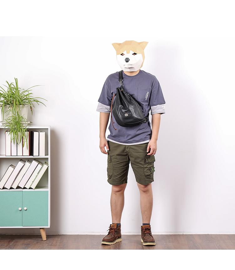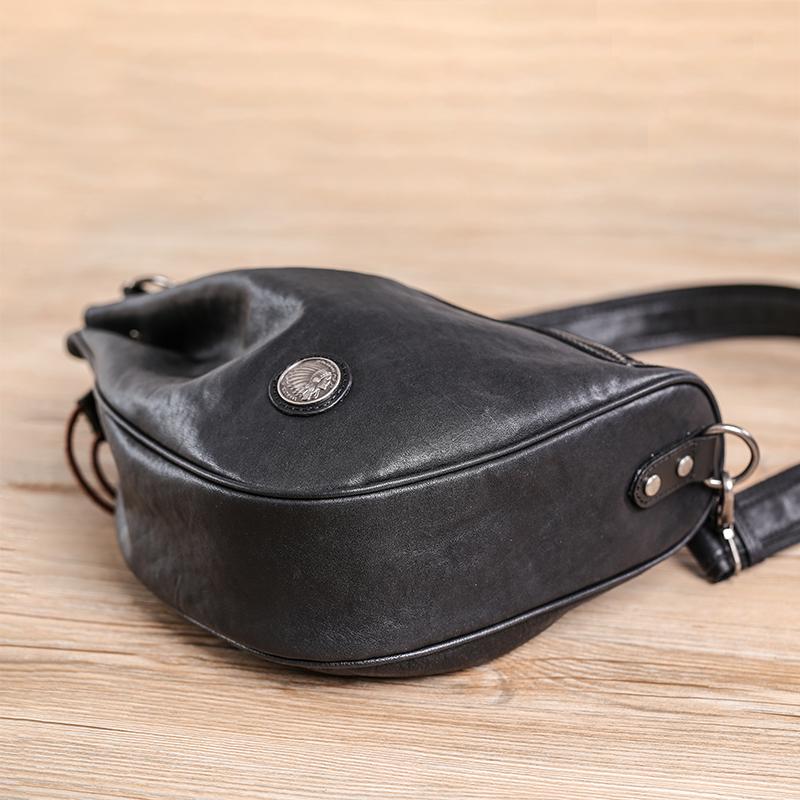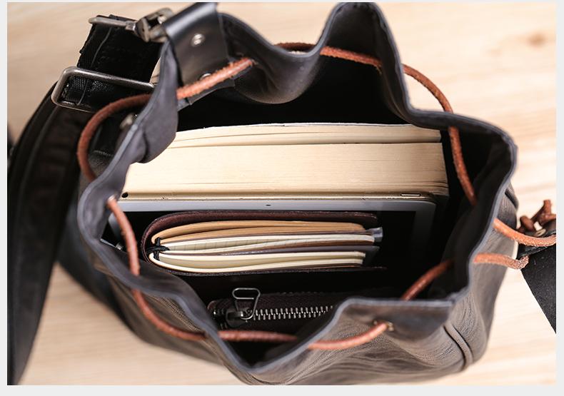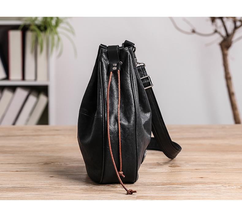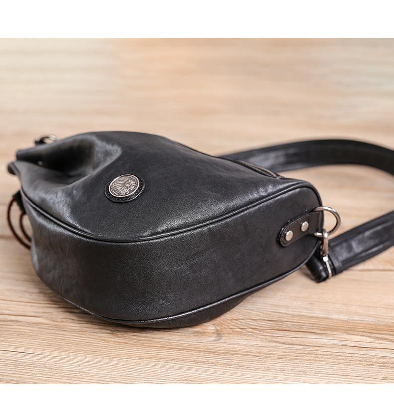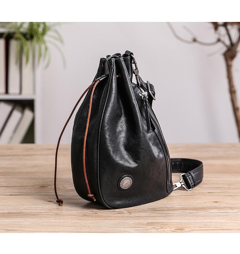 Design: Cool Black Leather Men's Bucket Bag Chest Bag One shoulder Backpack Crossbody Bag For Men