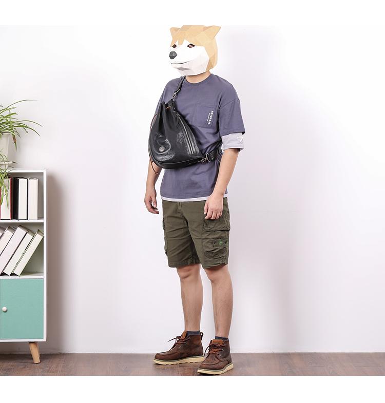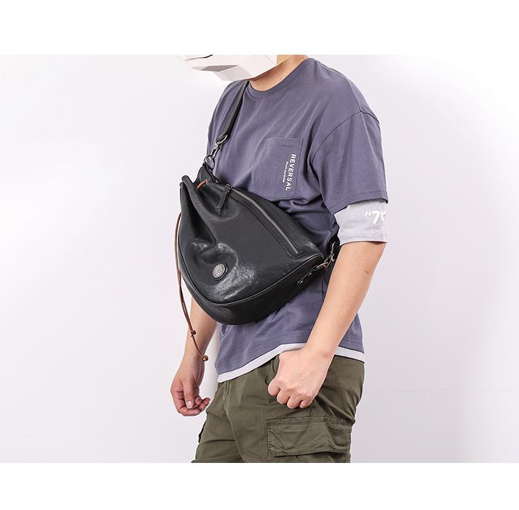 Style: Cool Black Leather Men's Bucket Bag Chest Bag One shoulder Backpack Crossbody Bag For Men