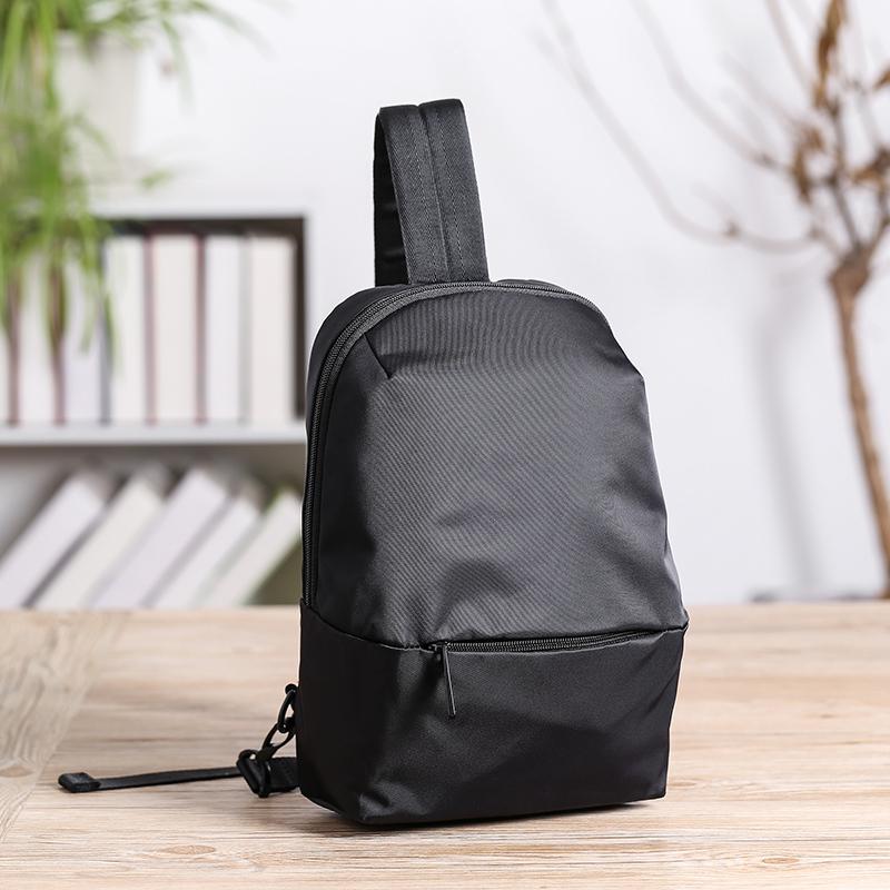 Design: Cool Black Nylon Backpack Men's 10-inch Sling Bag Chest Bag One shoulder Backpack Sports Bag For Men