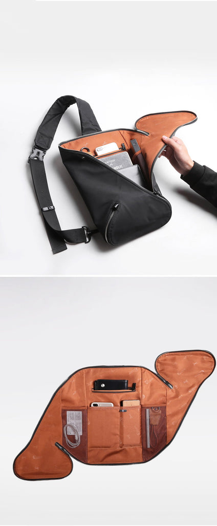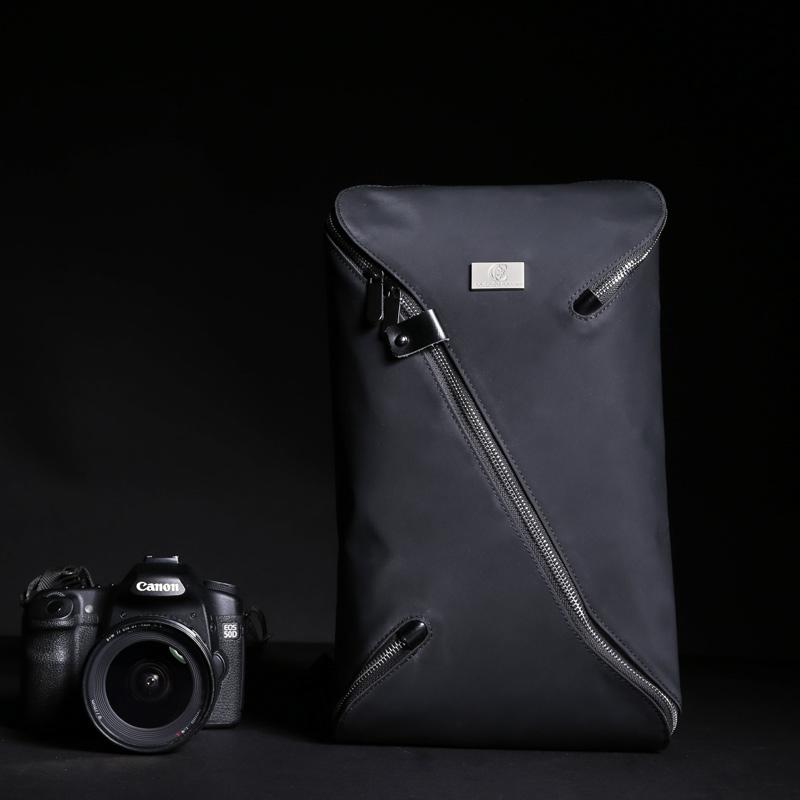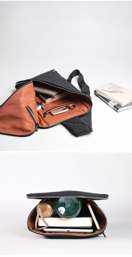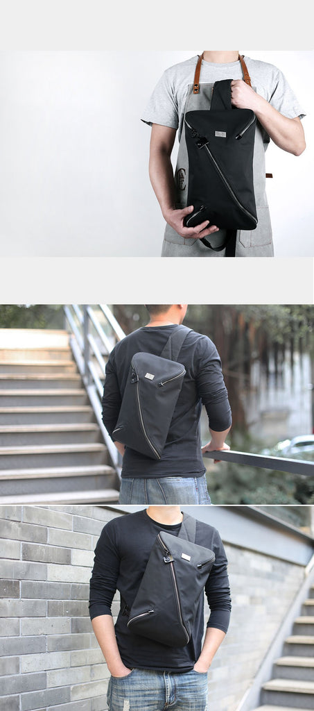 Design: Cool OXFORD CLOTH PVC Black Men's Sling Bag Chest Bag One Shoulder Backpack For Men