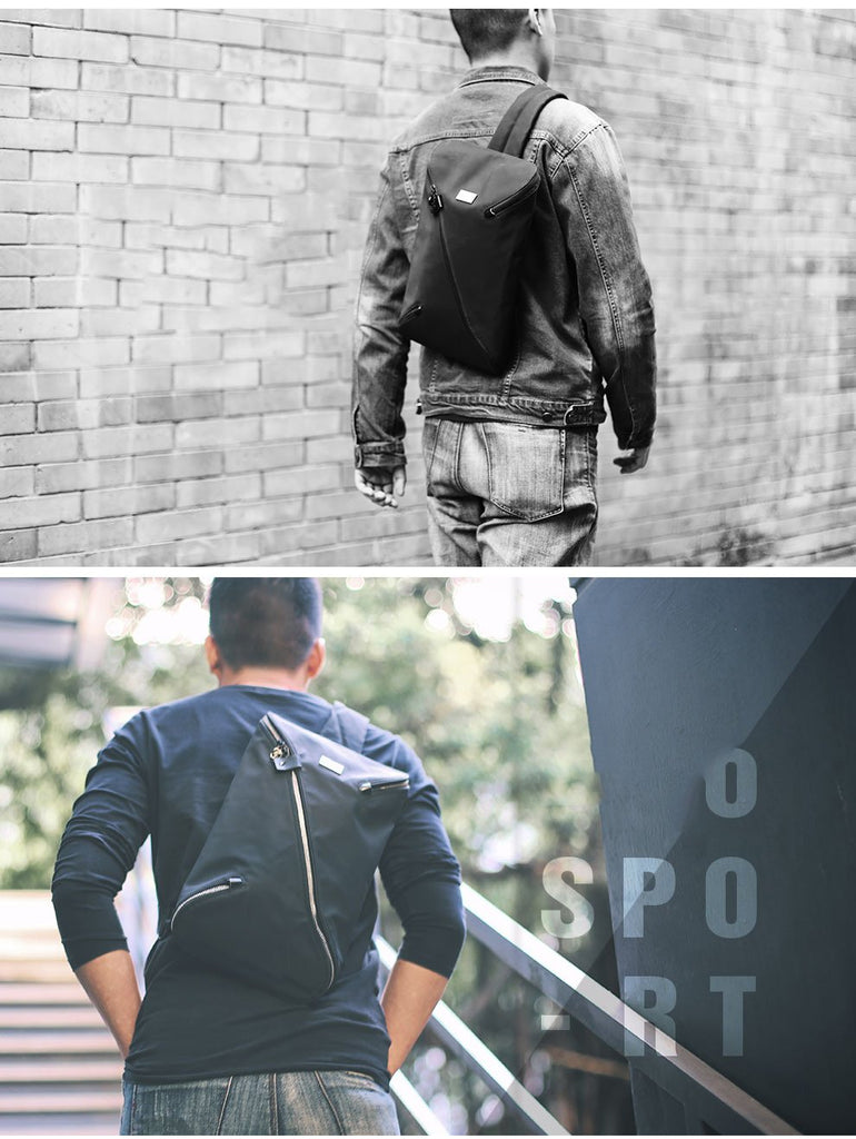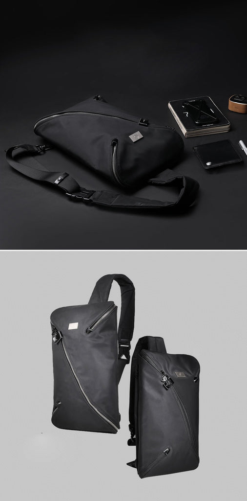 Style: Cool OXFORD CLOTH PVC Black Men's Sling Bag Chest Bag One Shoulder Backpack For Men