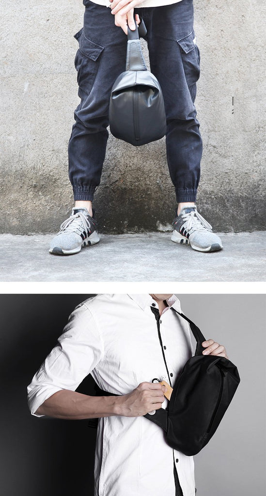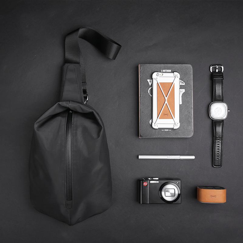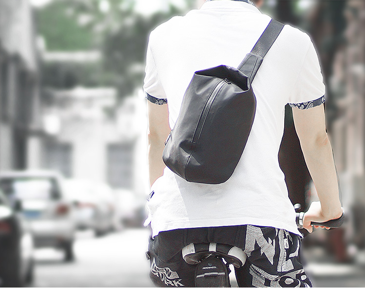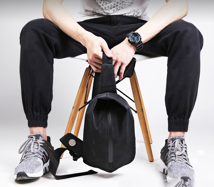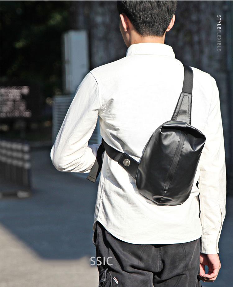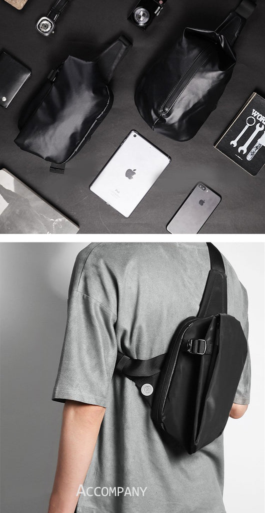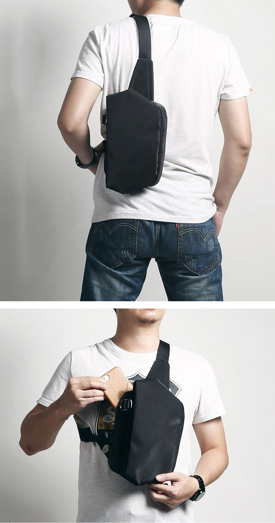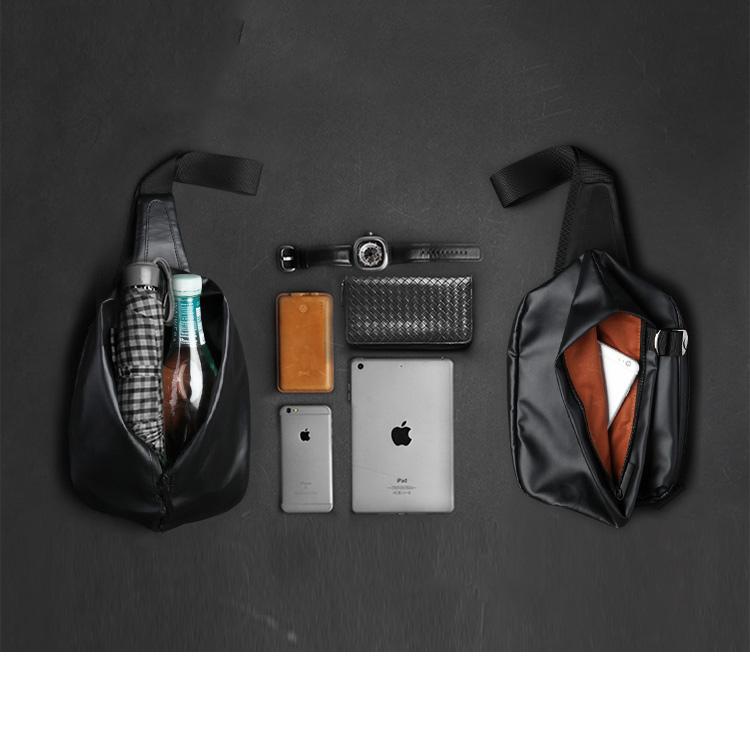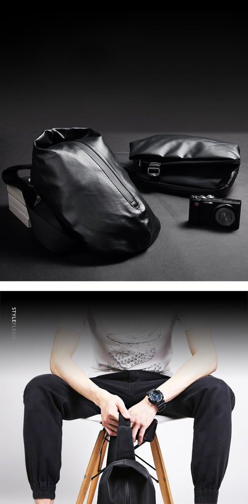 Style: Cool OXFORD CLOTH PVC Black Men's Sling Bag One Shoulder Backpack For Men