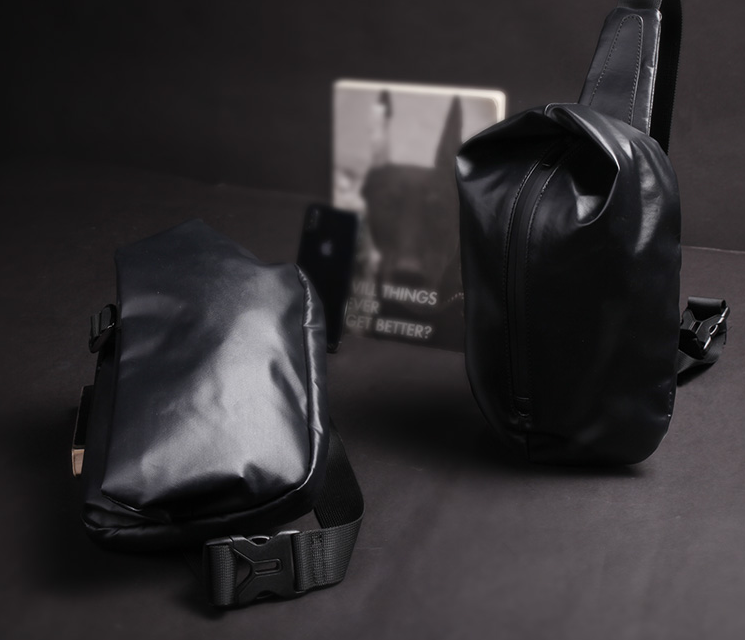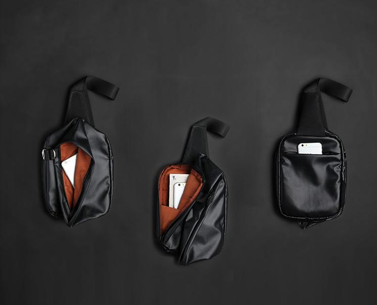 Design: Cool OXFORD CLOTH PVC Black Men's Sling Bag One Shoulder Backpack For Men