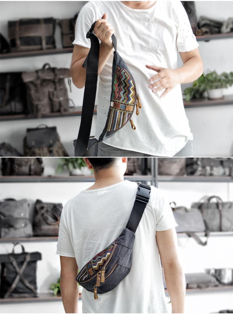 Design: Cool Canvas Village Mens Sling Bag Chest Bag One Shoulder Backpack for Men