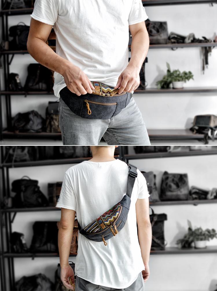 Style: Cool Canvas Leather Mens Sling Bag Waterproof Chest Bag One Shoulder Backpack for Men