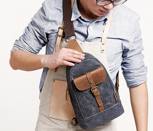 Style: Cool Canvas Mens Sling Bag Sling Backpack One Shoulder Pack Chest Bag for men