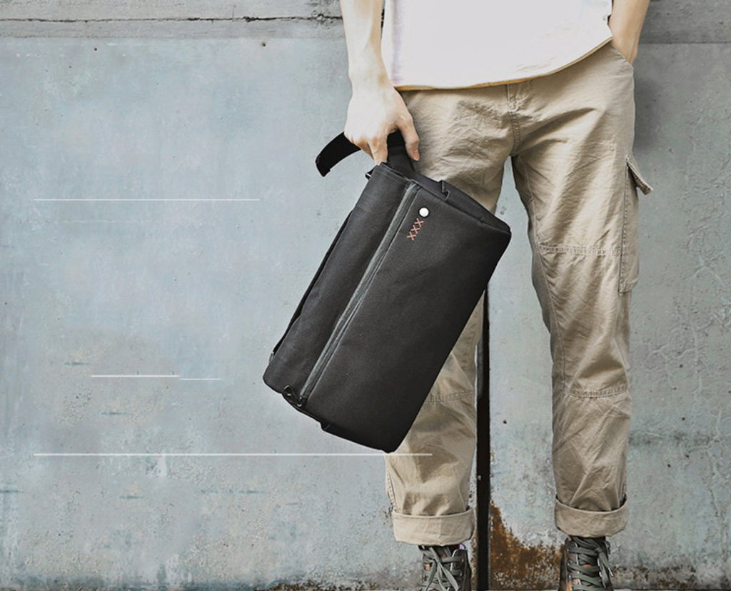 Design: Fashion Oxford Cloth PVC Men's Black Sling Bag Chest Bag Blue One Shoulder Backpack For Men