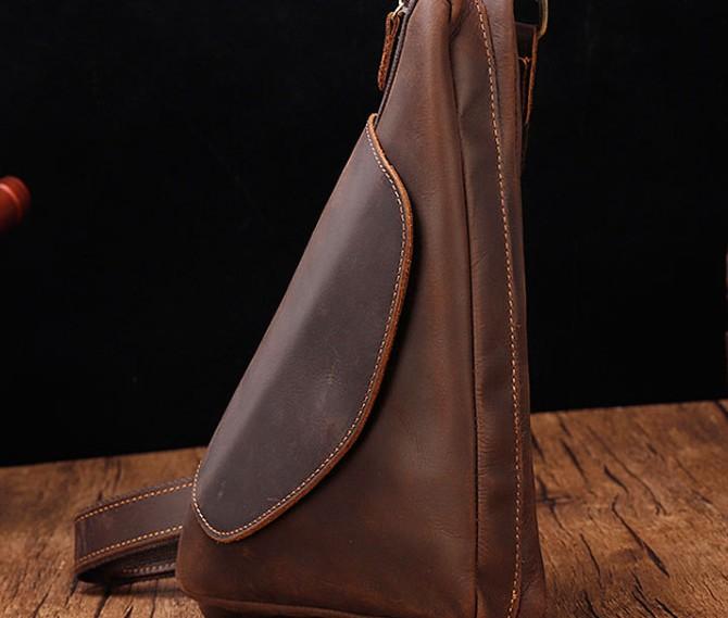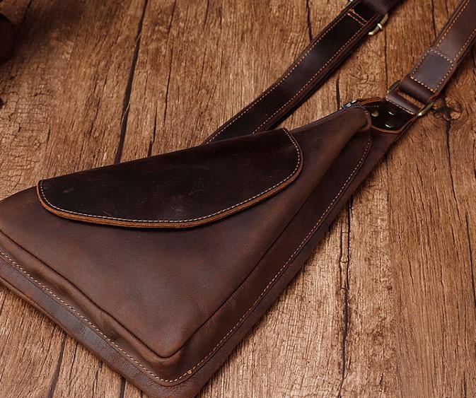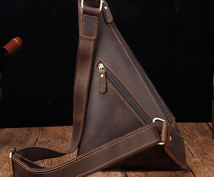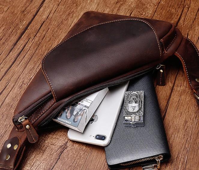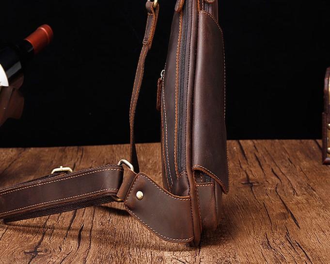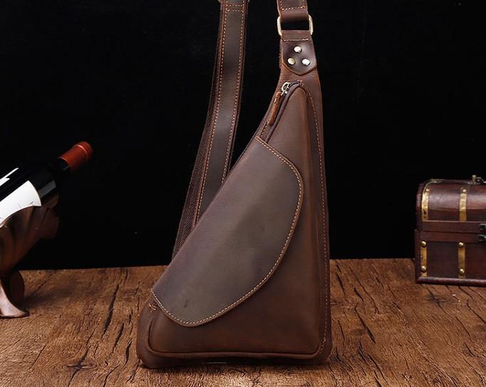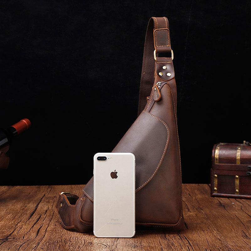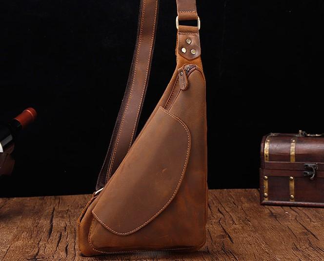 Style: Genuine Leather Cool Chest Bag Sling Bag Crossbody Bag Travel Bag Hiking Bag For Mens