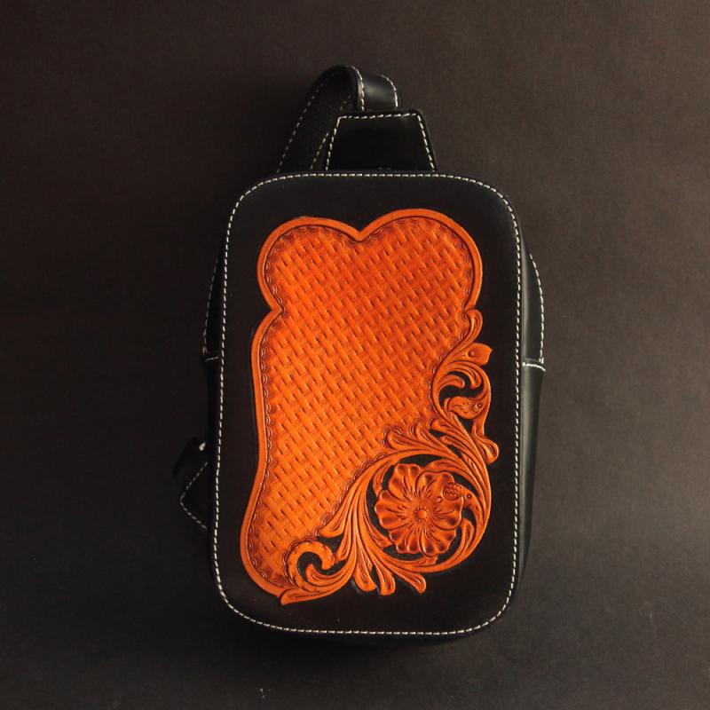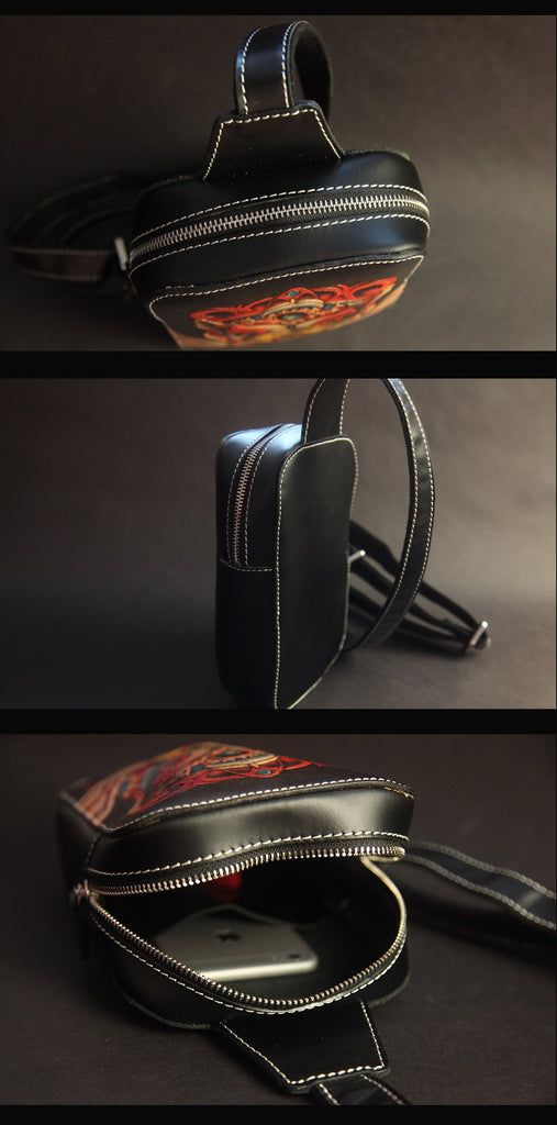 Design: Cool Handmade Tooled Leather Brave Troops Sling Bag Chest Bag One Shoulder Backpack For Men