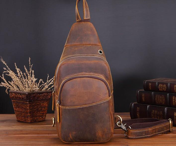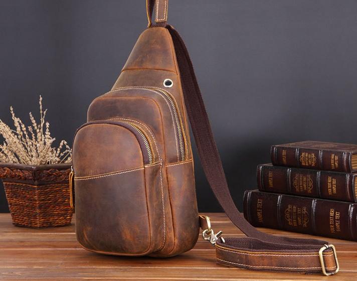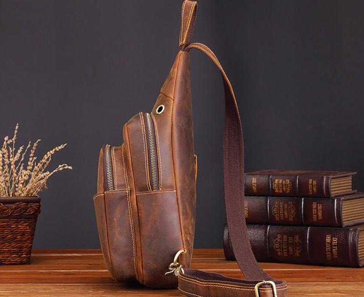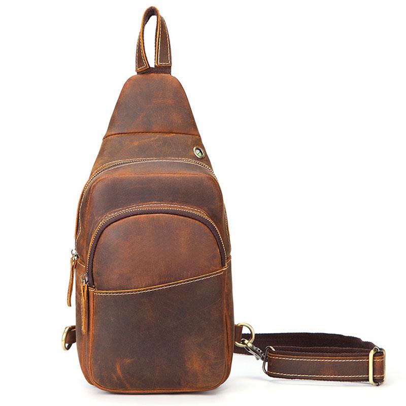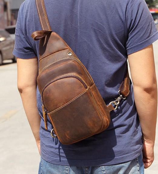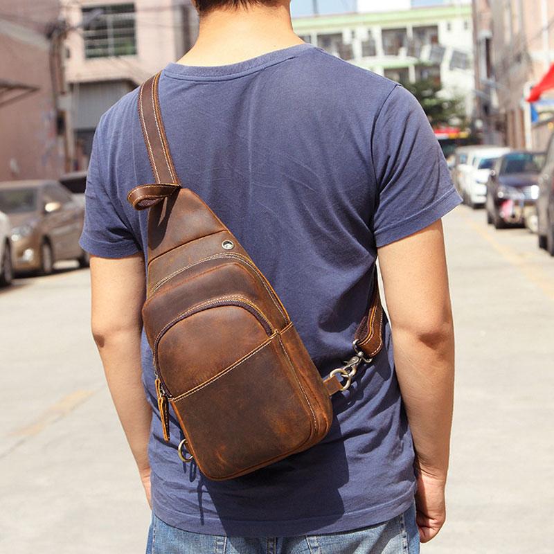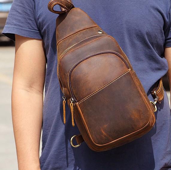 Style: Genuine Leather Cool Chest Bag Sling Bag Crossbody Bag Travel Bag Hiking Bag For Mens