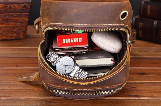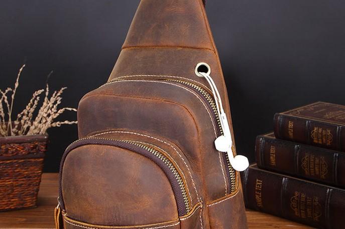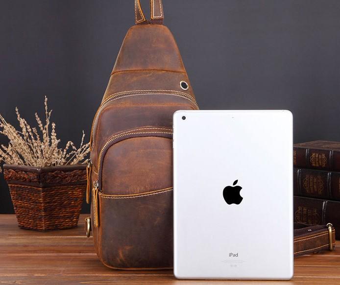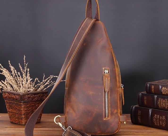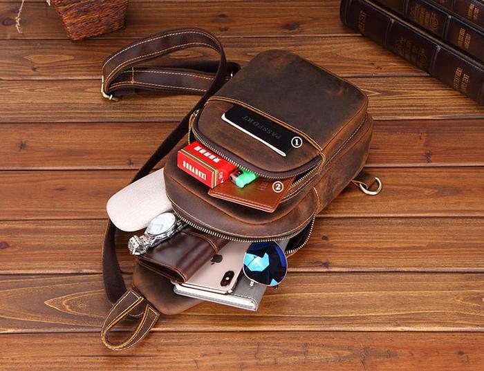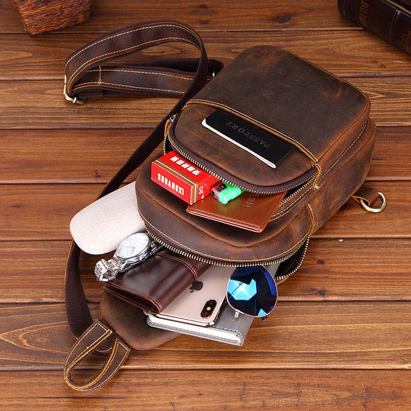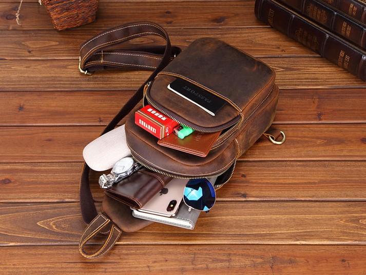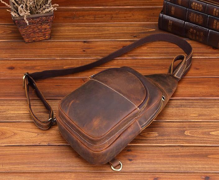 Style: Genuine Leather Cool Chest Bag Sling Bag Crossbody Bag Travel Bag Hiking Bag For Mens