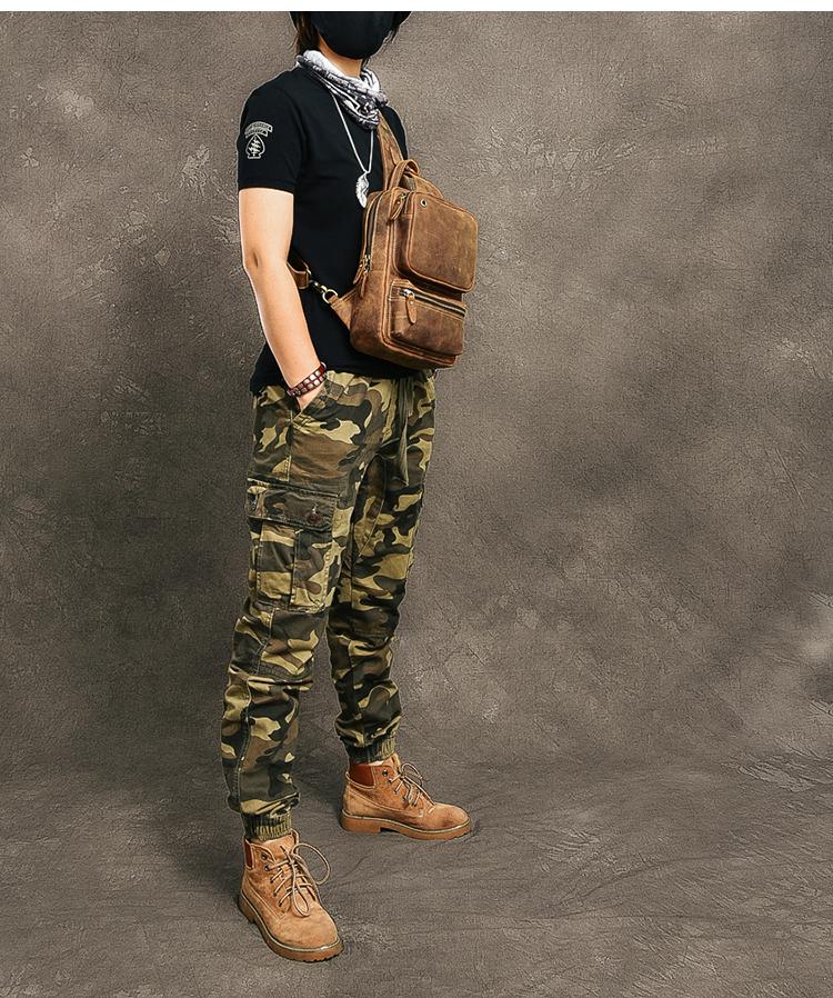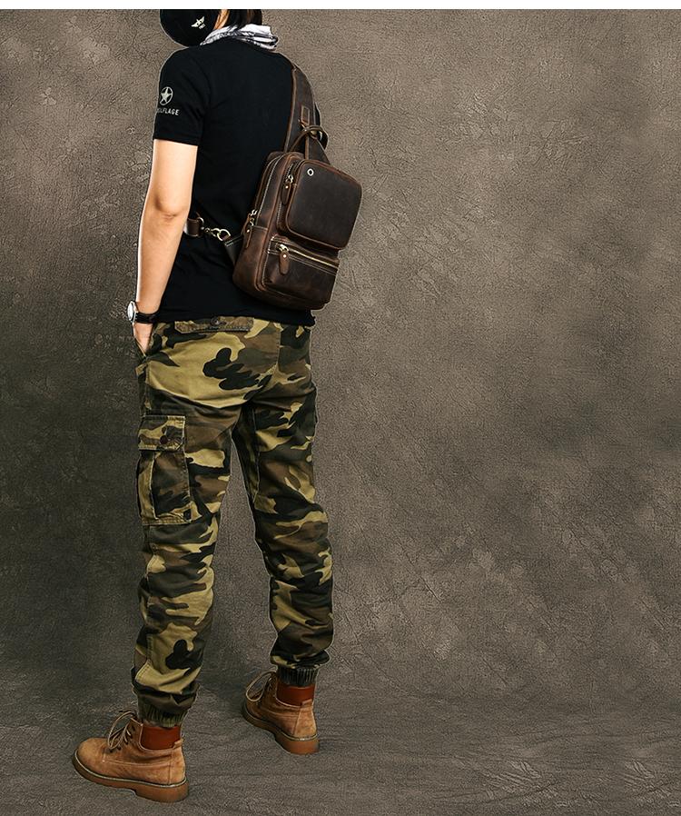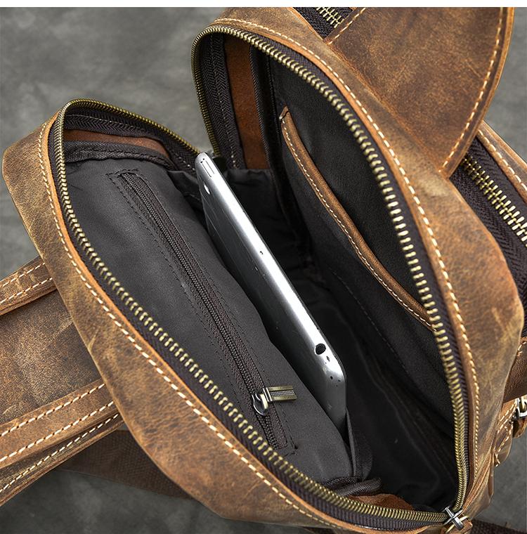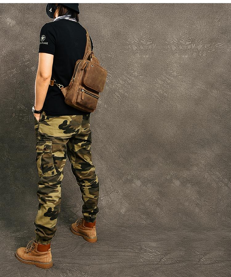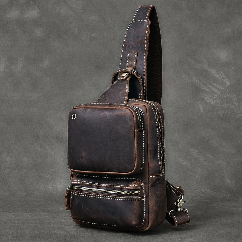 Design: Cool Leather Mens 10" Brown Chest Bag Dark Coffee Travel Backpack College Backpack for Men