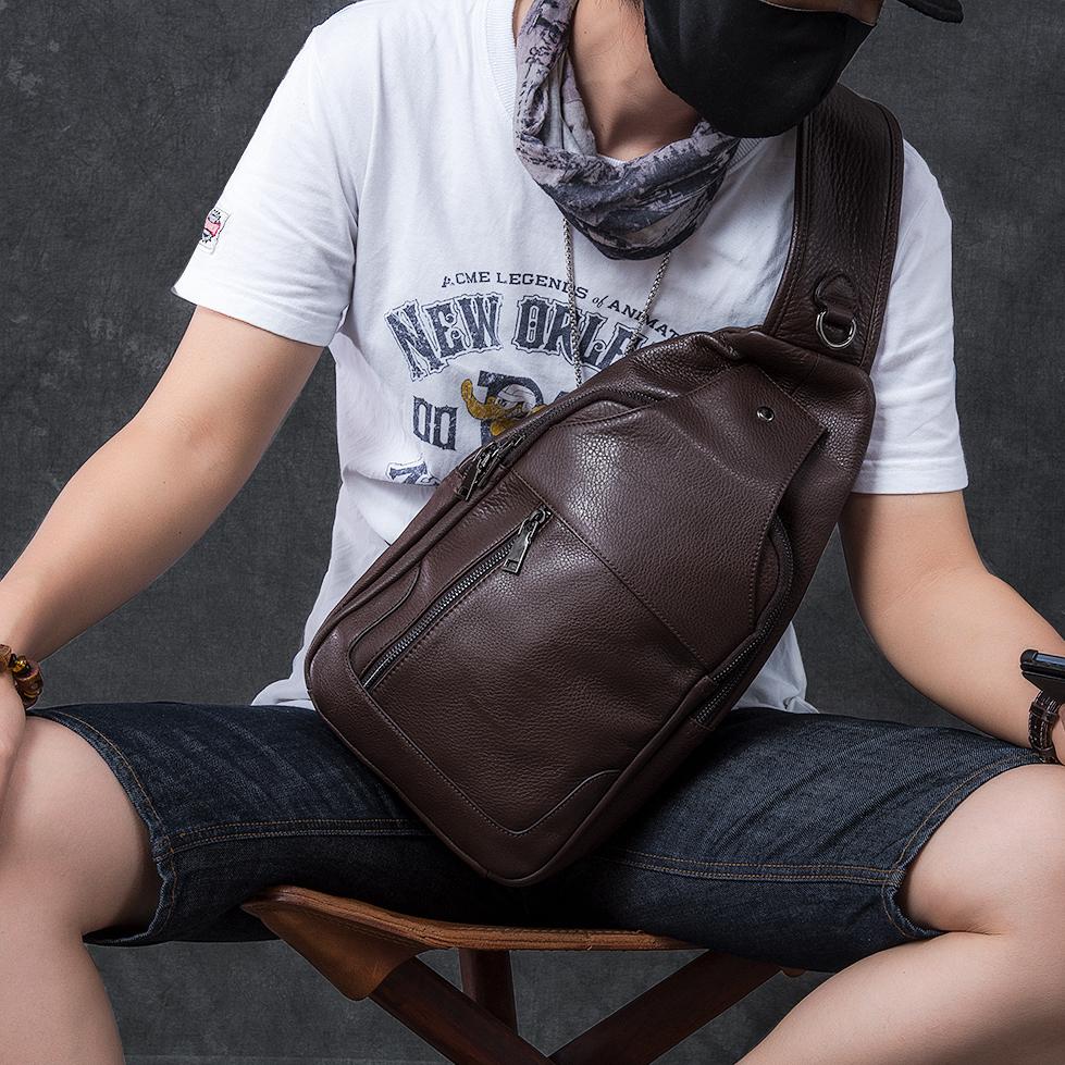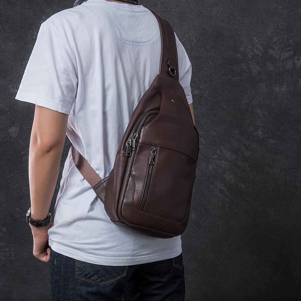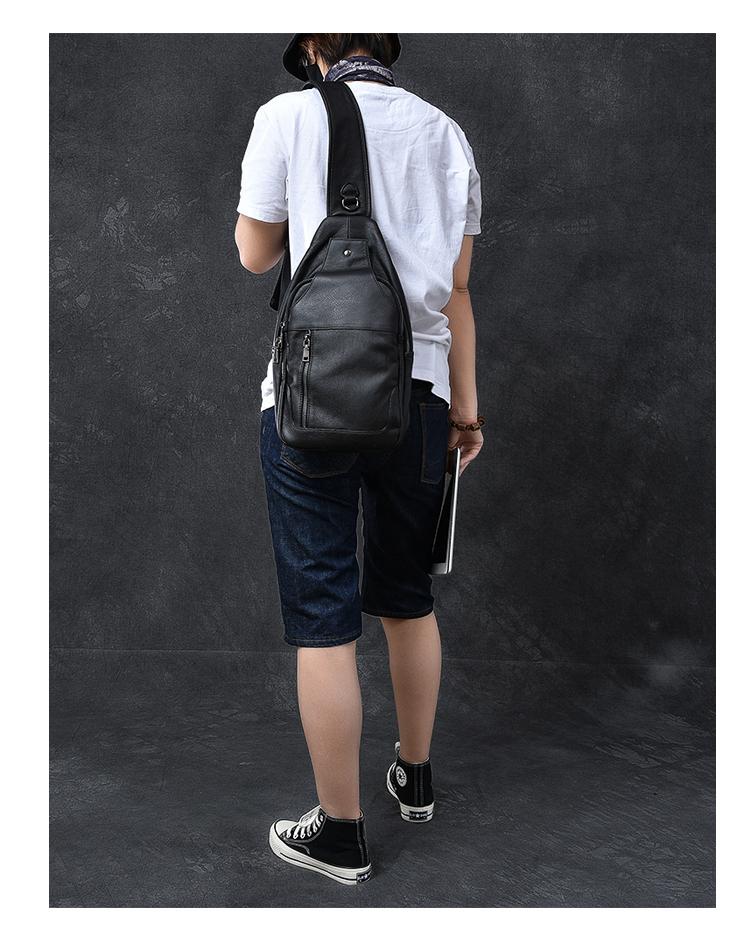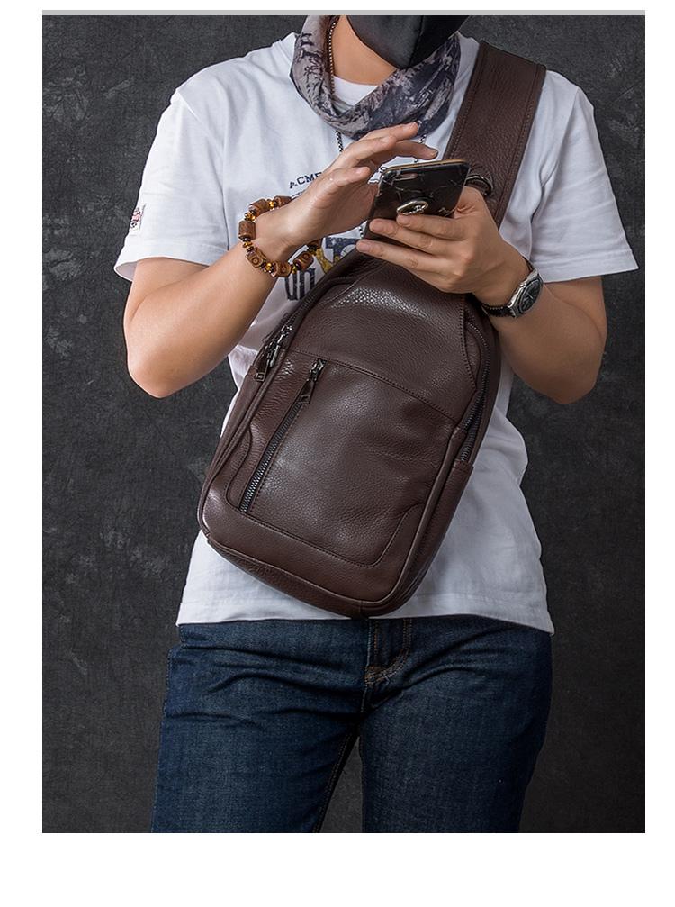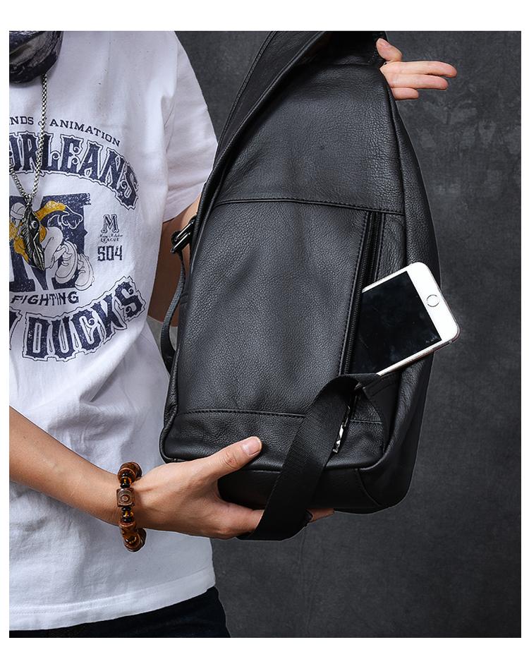 Style: Cool Leather Mens 10" Black Backpack Sling Bag Brown Chest Bag One Shoulder Backpack for Men