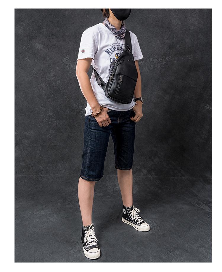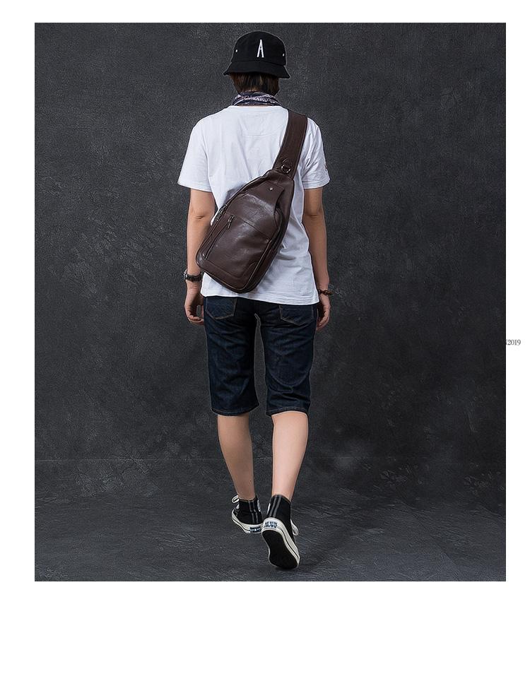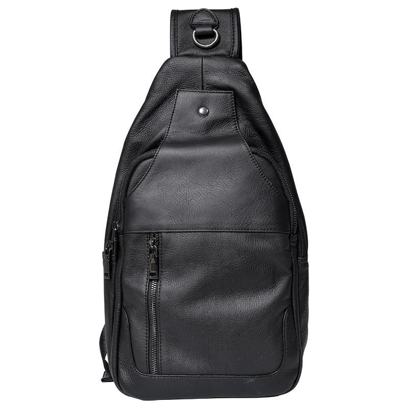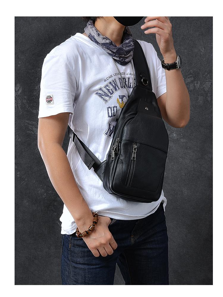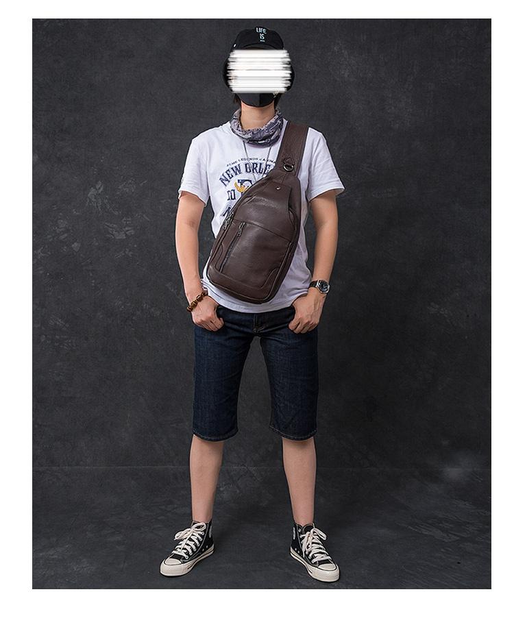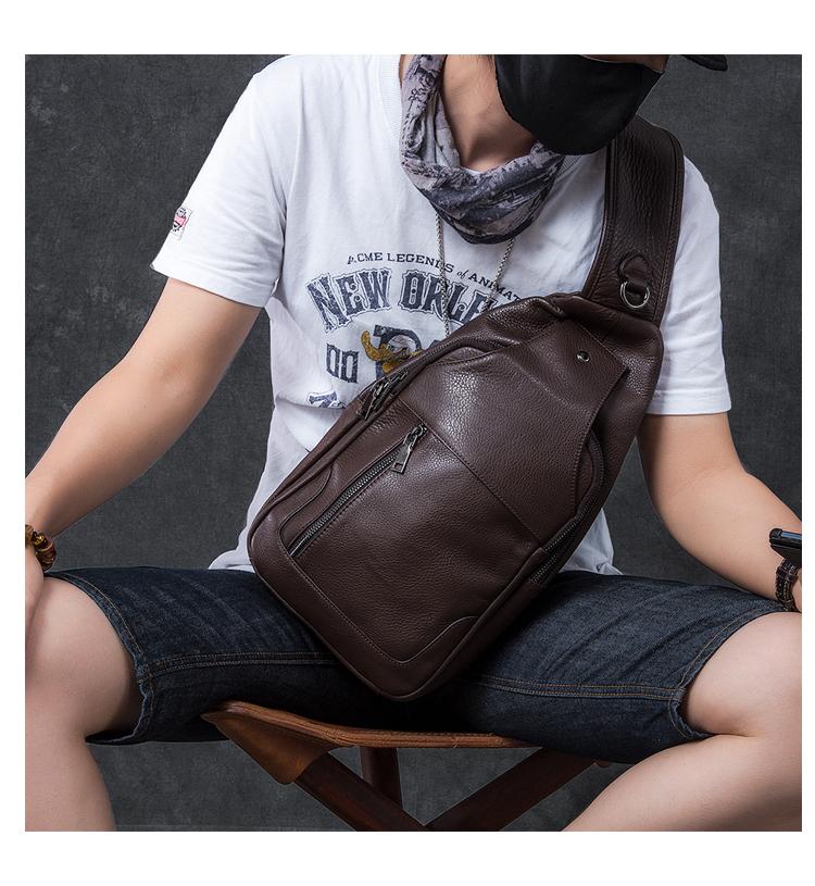 Style: Cool Leather Mens 10" Black Backpack Sling Bag Brown Chest Bag One Shoulder Backpack for Men