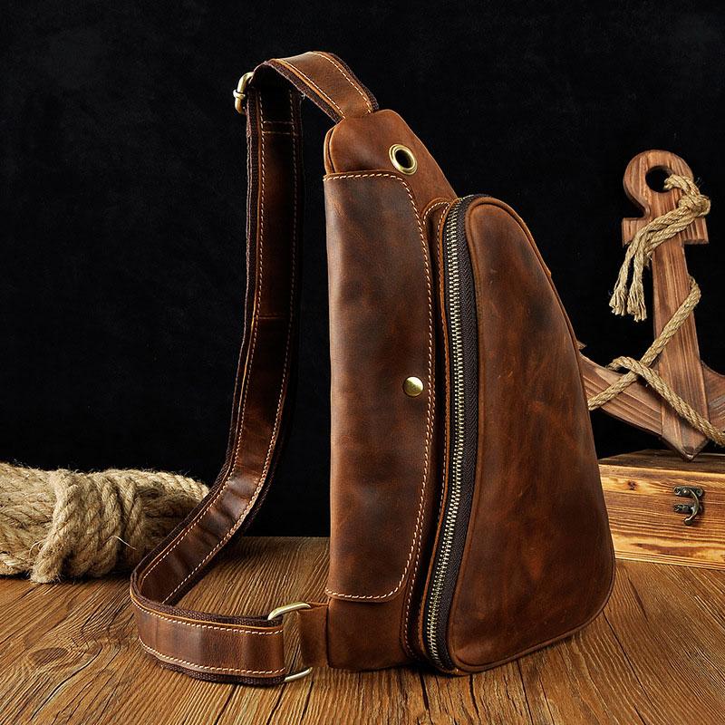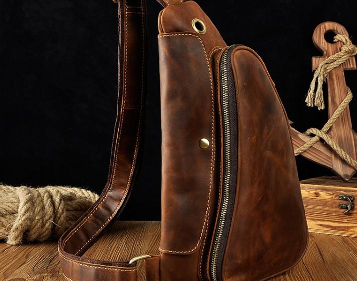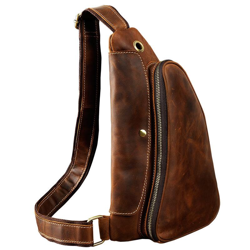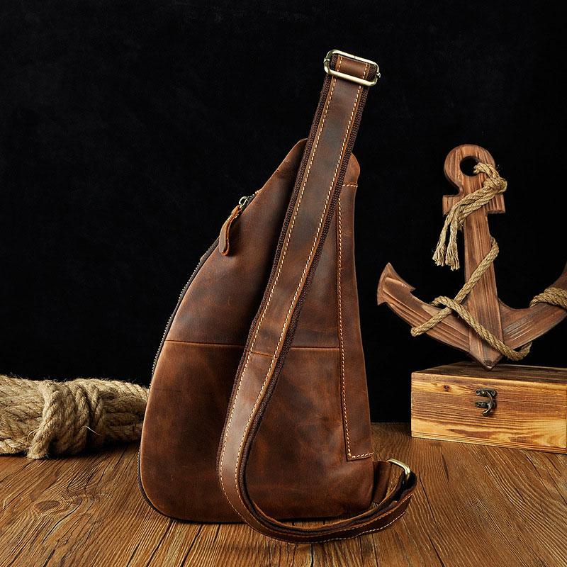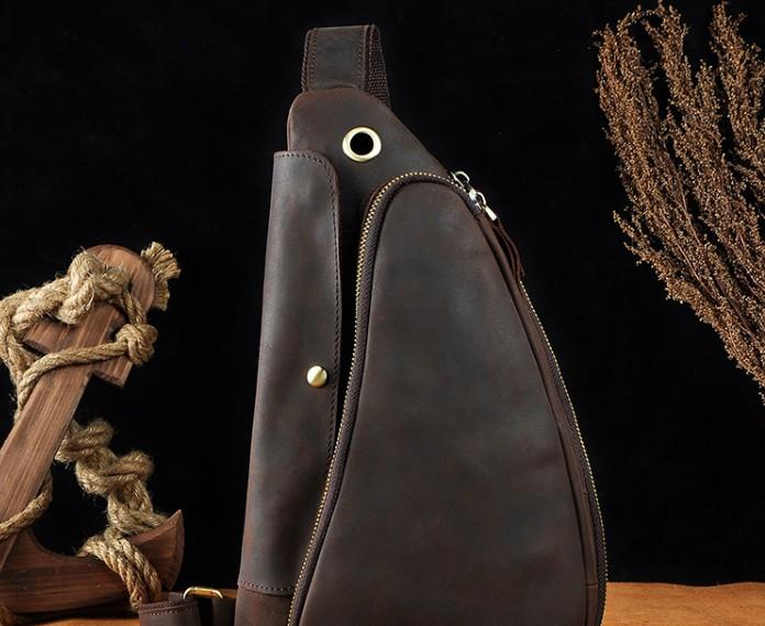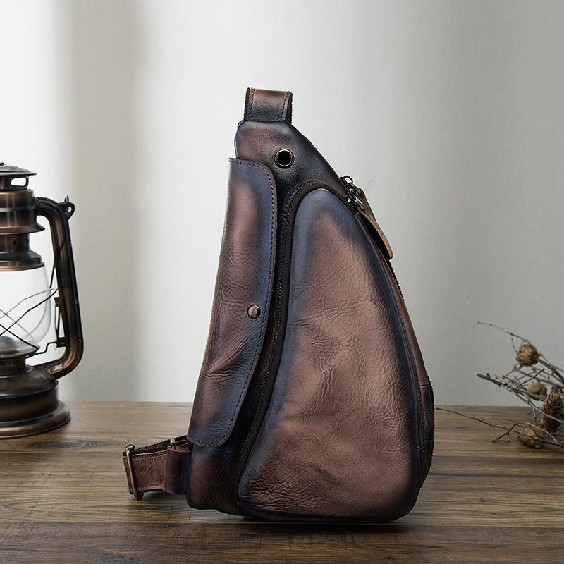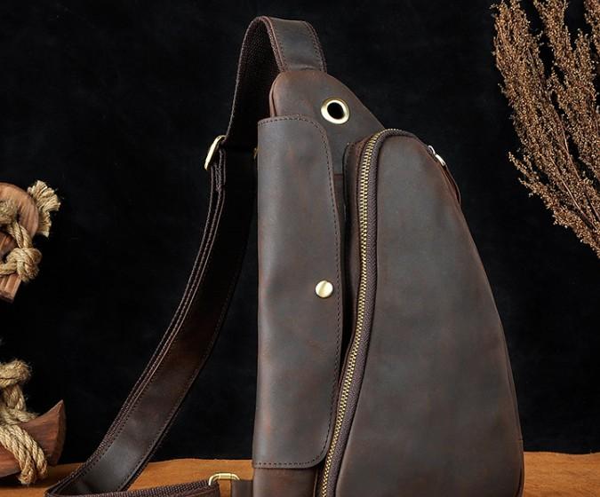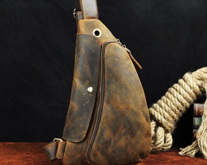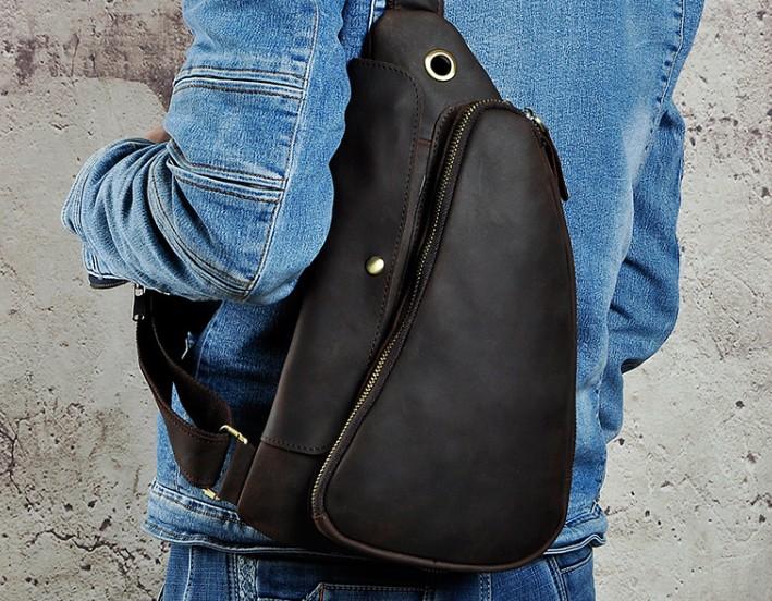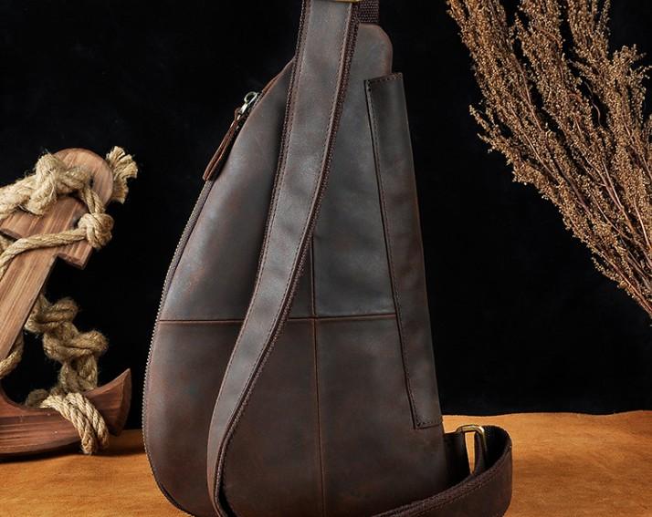 Design: Vintage Leather Mens Sling Shoulder Bag Sling Bag Chest Bag Sling Backpack for men