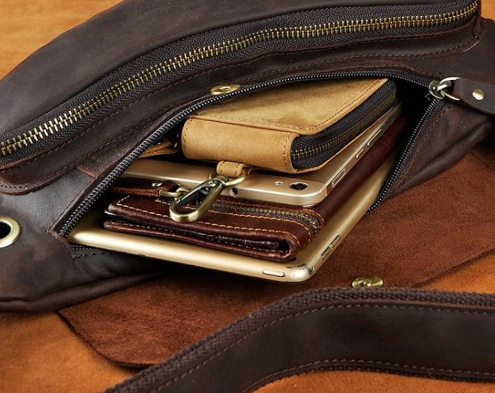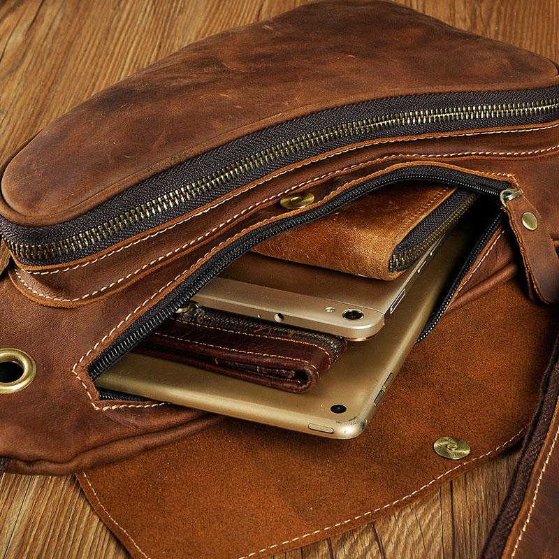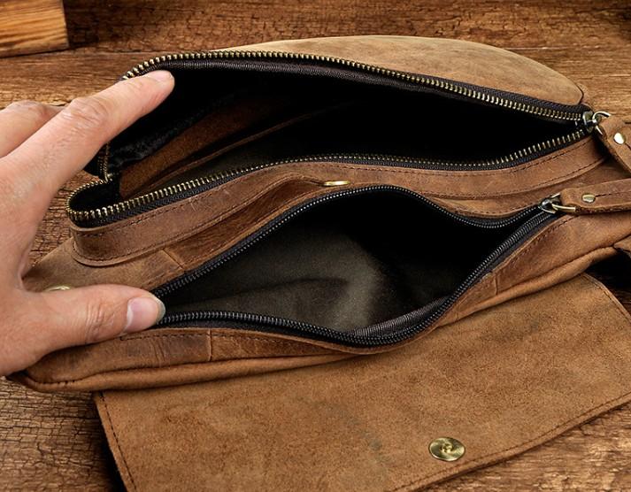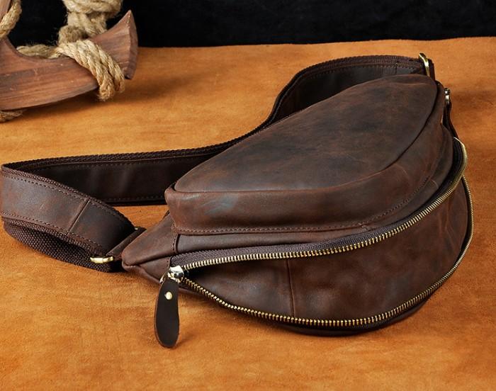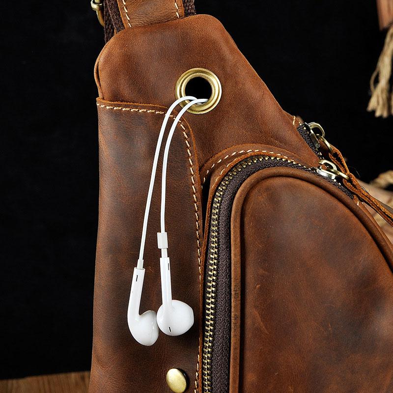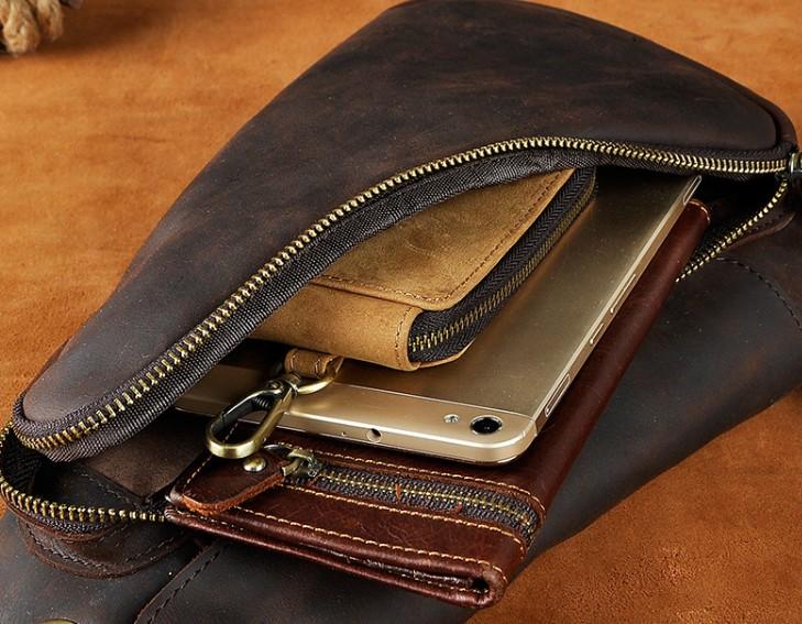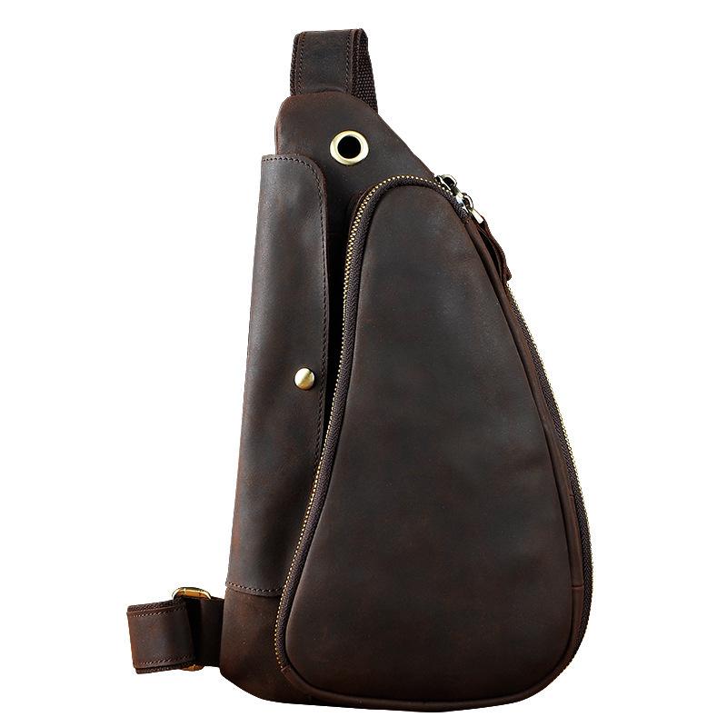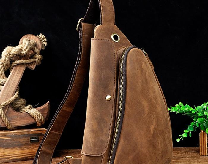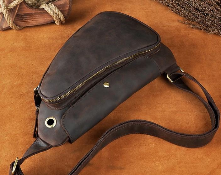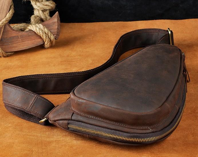 Design: Vintage Leather Mens Sling Shoulder Bag Sling Bag Chest Bag Sling Backpack for men
